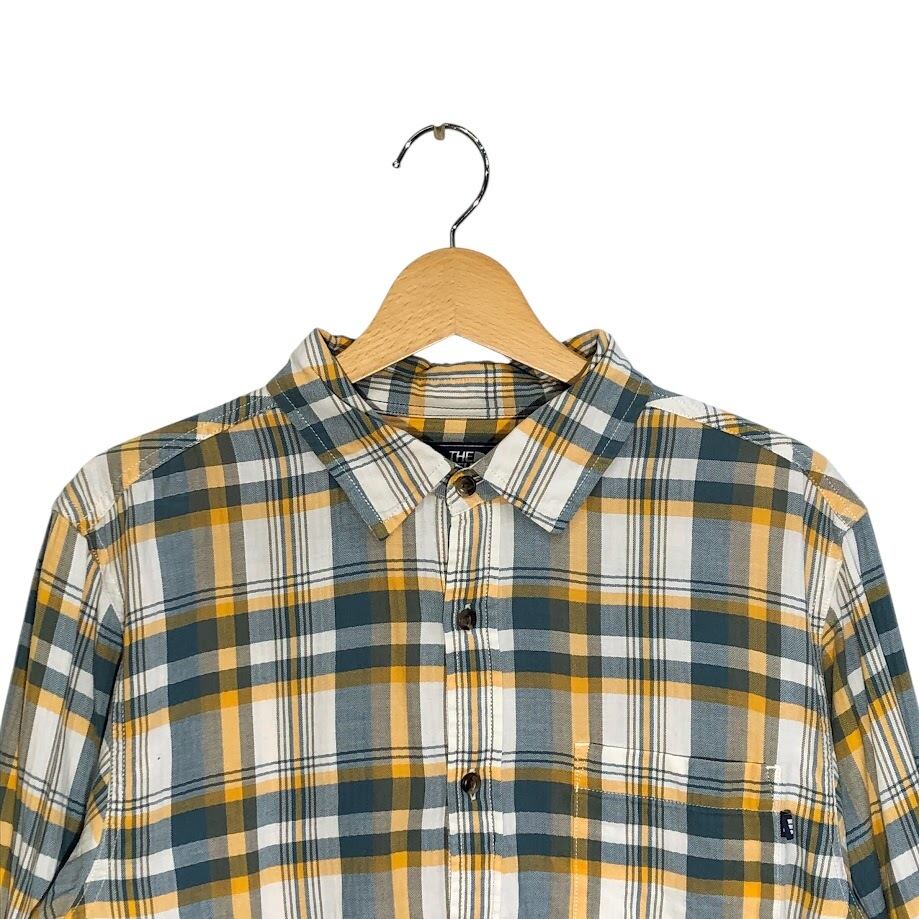 THE NORTH FACE ザノースフェイス チェック柄 コットンシャツ 長袖 シャツ India製 Mサイズ イエロー ブルー ホワイト