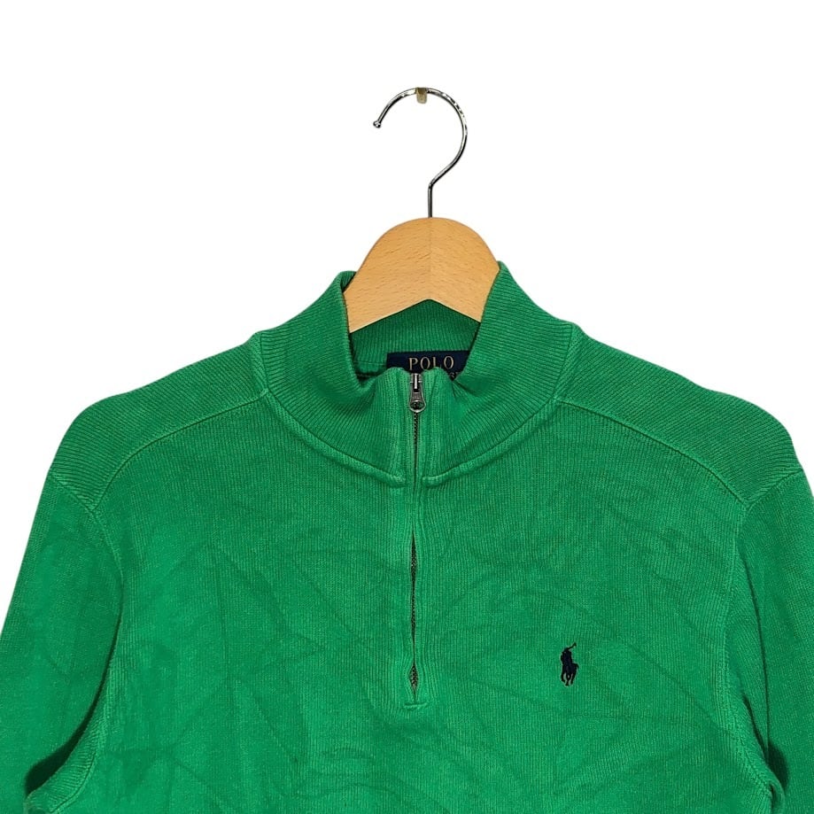 商品名:POLO Ralph Lauren ポロラルフローレン ポニー刺繡 ニット セーター ハーフジップ 長袖 ワンポイント刺繡 Vietnam製 L(14-16)サイズ グリーン