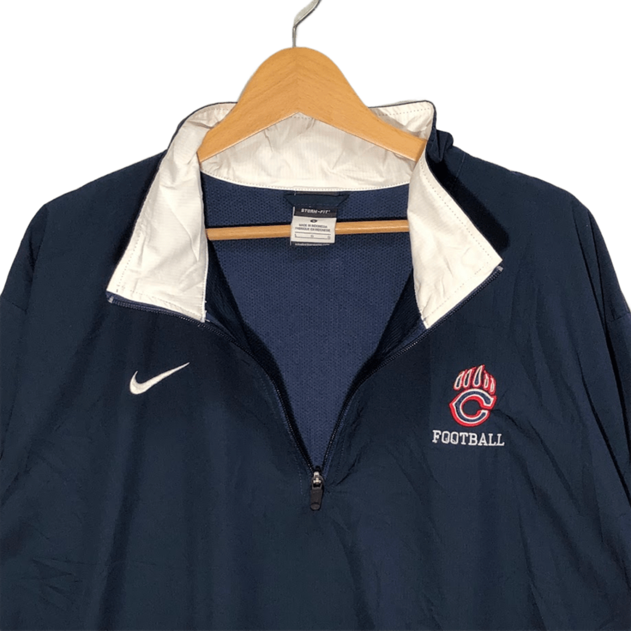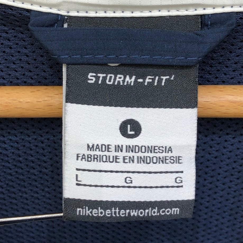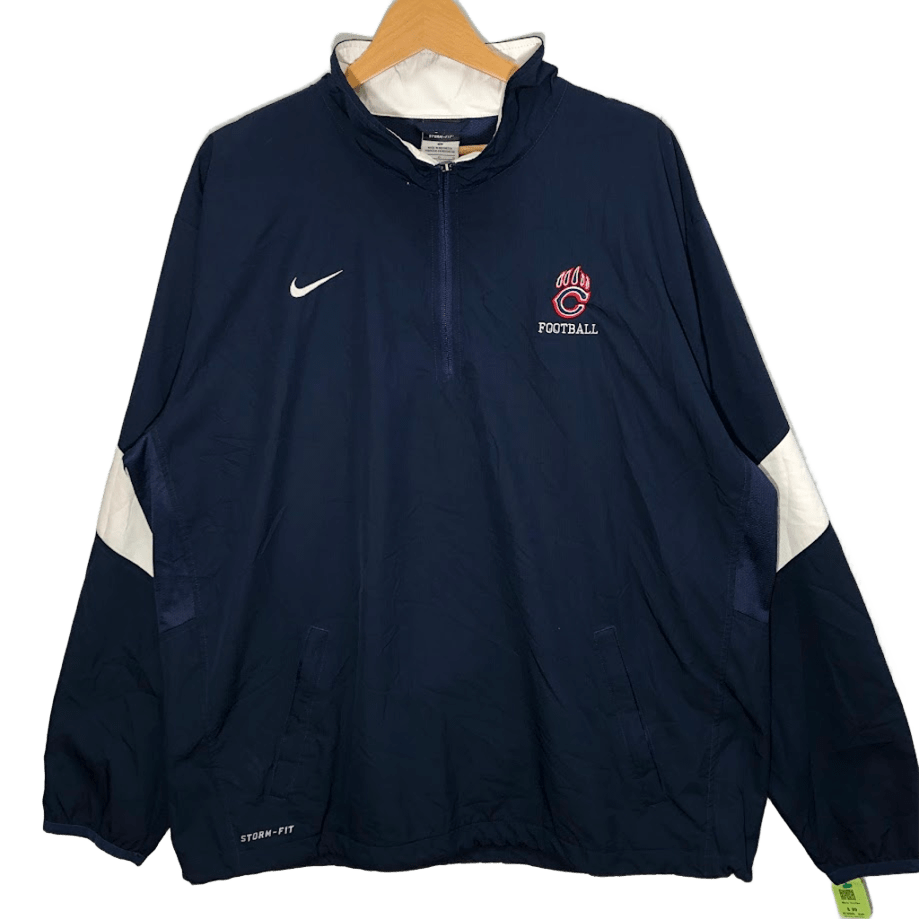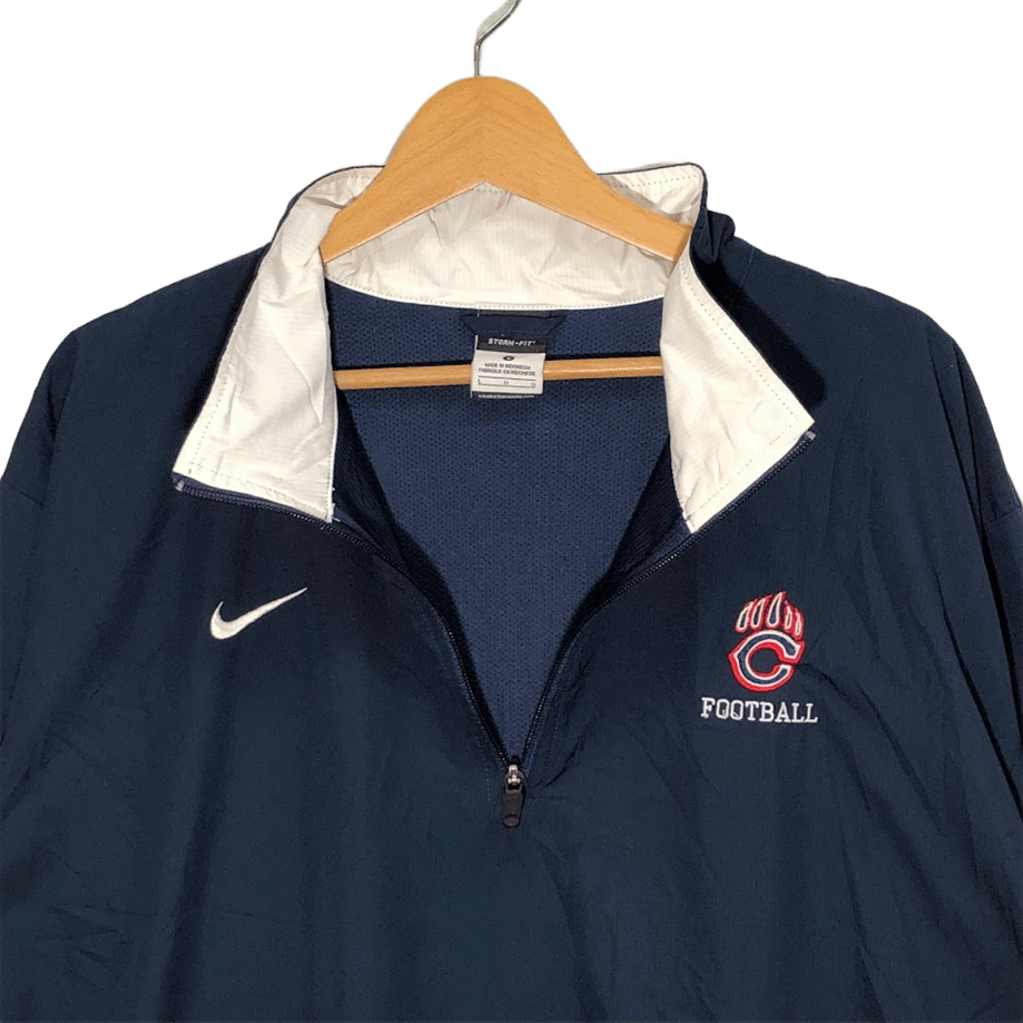 商品名:NIKE/ナイキ STORM-FIT FOOTBALL シカゴベアーズ フットボール アメフト スポーツ チーム ハーフジップ プルオーバー ナイロンジャケット 長袖 ワンポイント刺繡 トラックジャケット INDONESIA製 Lサイズ ネイビー
