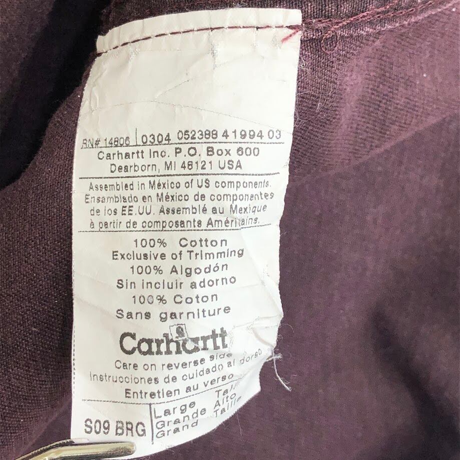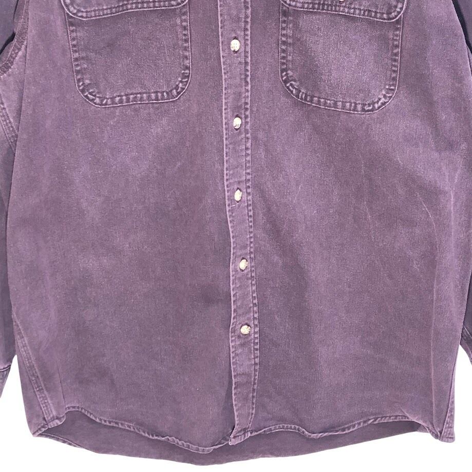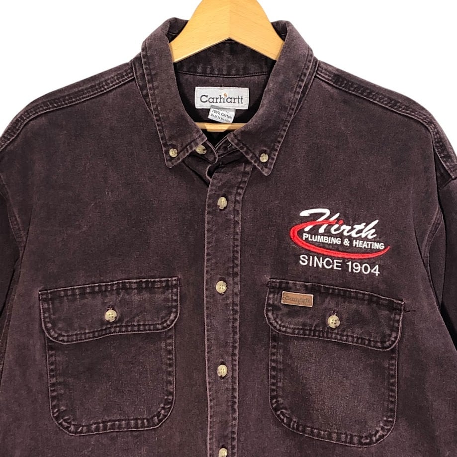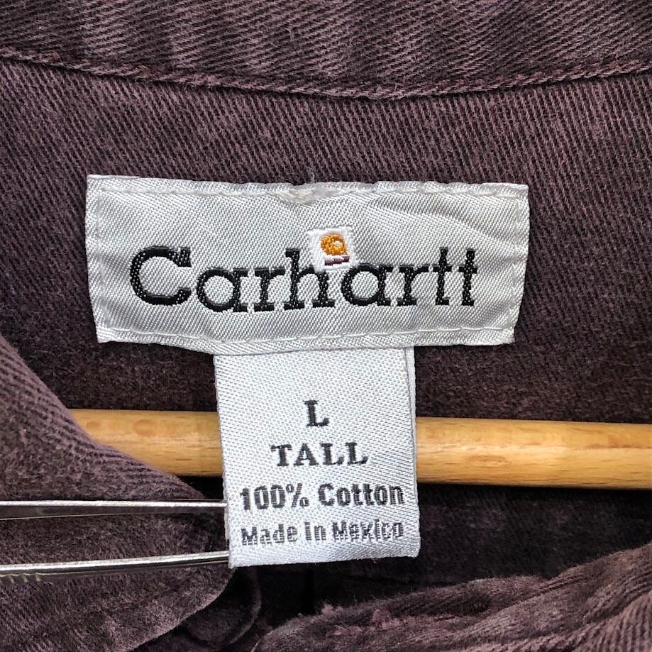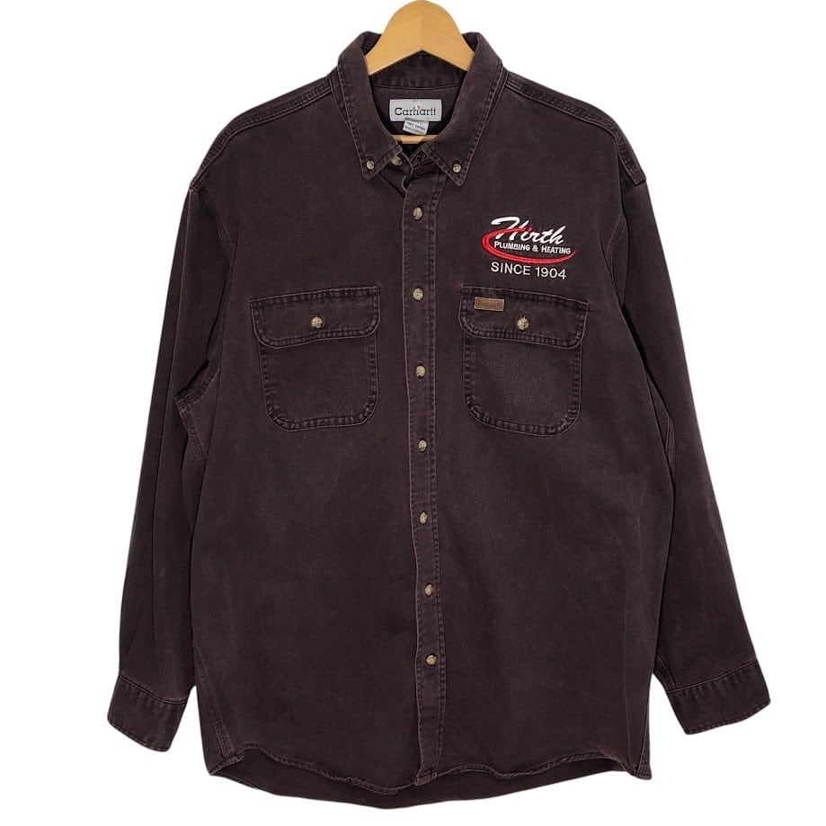 Carhartt/カーハート 企業ロゴ刺繍 ワークシャツ 厚手 長袖シャツ ボタンダウン Mexico製 Lサイズ ボルドー