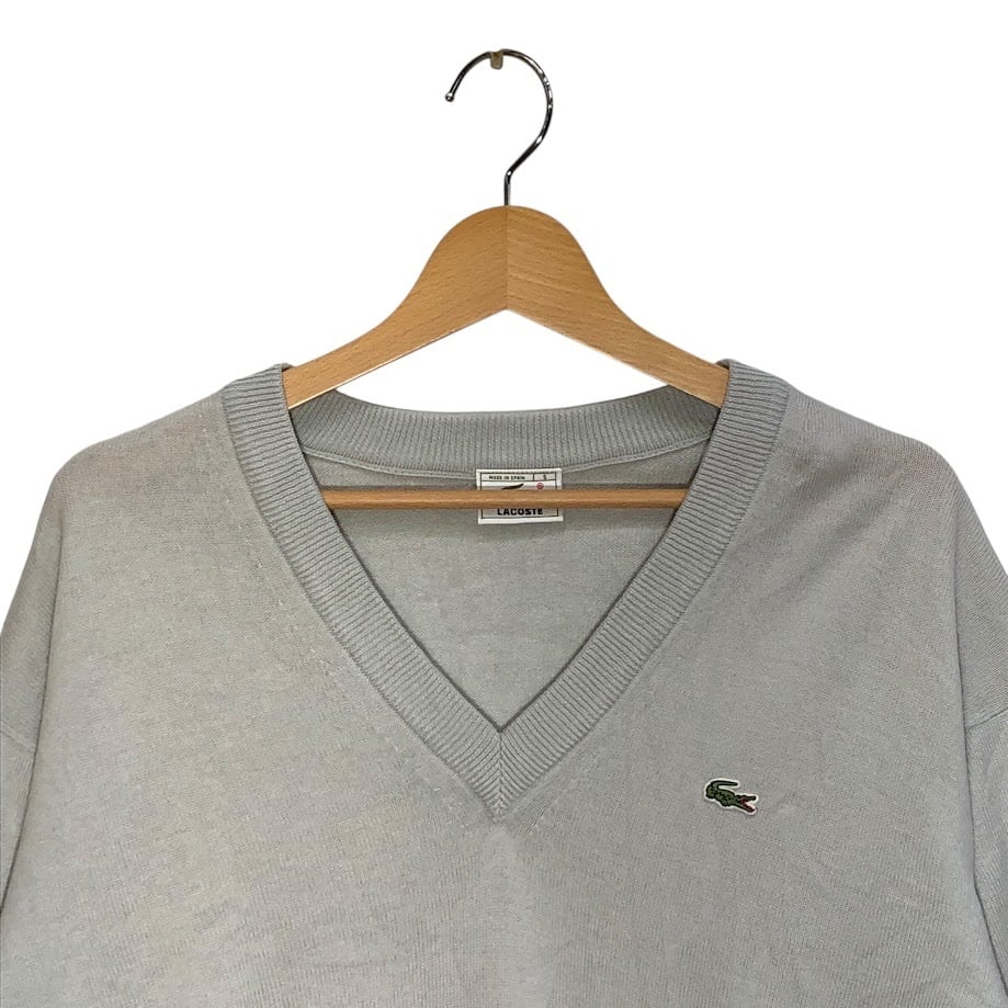商品名:LACOSTE ラコステ ニット セーター 長袖 ワンポイント刺繡 Vネック Spain製 5サイズ ライトグレー ライトグリーン