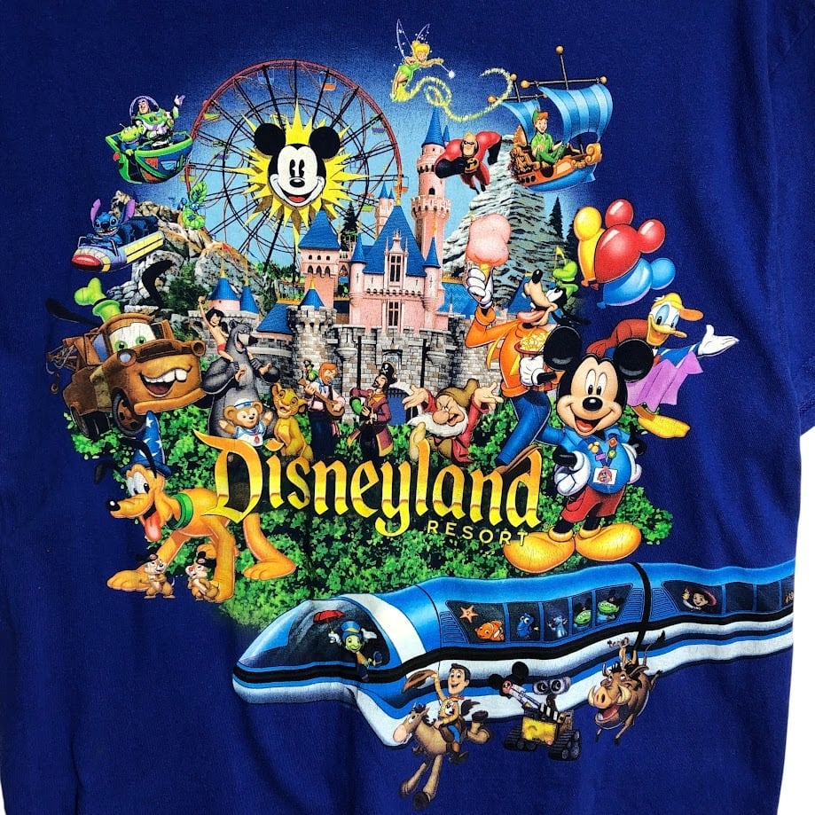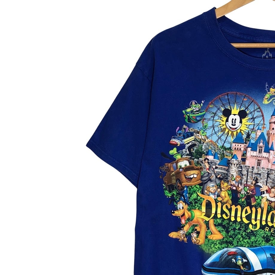 商品名:Hanes ヘインズ Disney land LESORT ディズニーランドリゾート ウォルトディズニーワールド ディズニーキャラクタープリント ミッキーマウス クルーネック 半袖 Tシャツ フロントプリント El Salvador製 Lサイズ ブルー