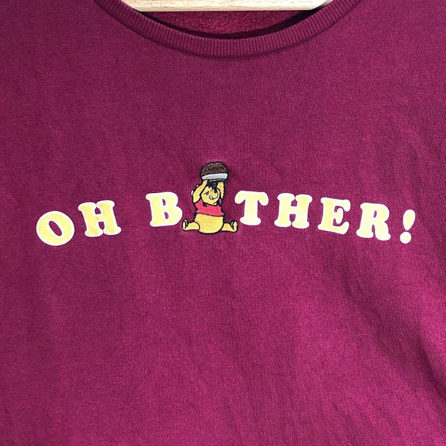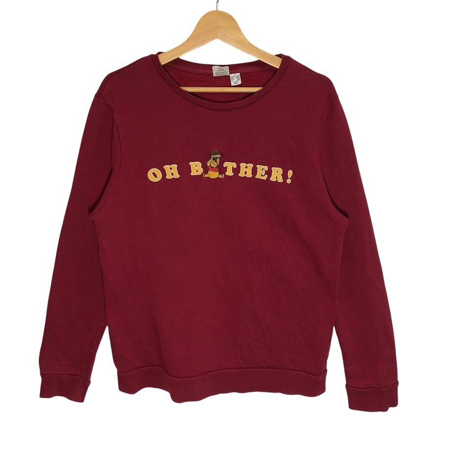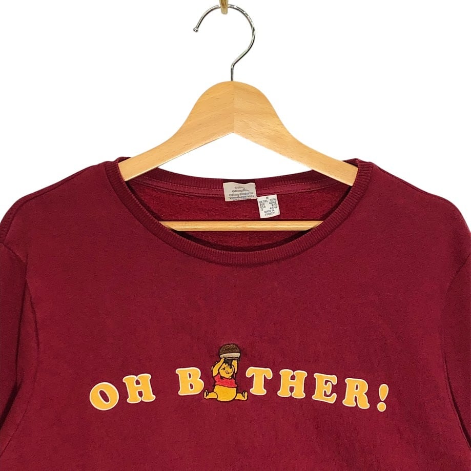 Disney ディズニー くまのプーさん キャラクター OH BTHER! スウェット トレーナー 長袖 フロントプリント ワンポイント刺繡 TURKEY製 Mサイズ レッド ワインレッド
