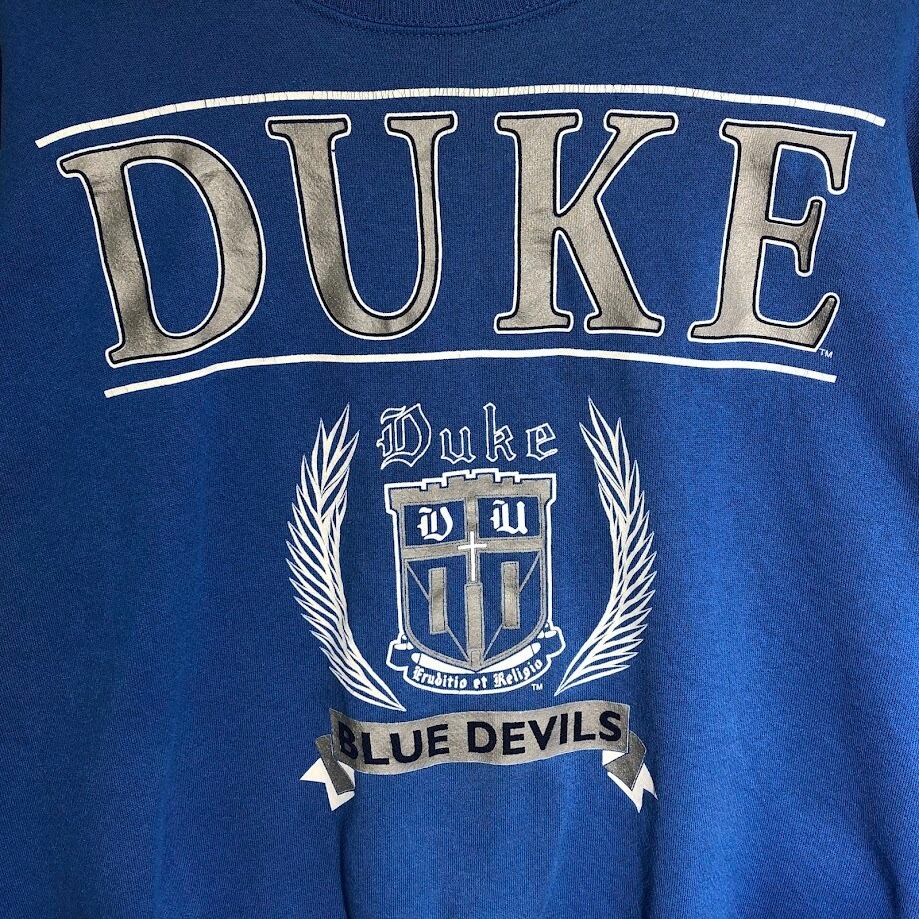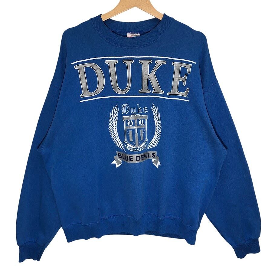 商品名:90's vintage 90年代 ヴィンテージ Hanes ヘインズ ACTIVE WEAR DUKE デューク大学 カレッジプリント スウェット トレーナー 長袖 フロントプリント オーバーサイズ ビッグシルエット USA製 XXLサイズ ブルー