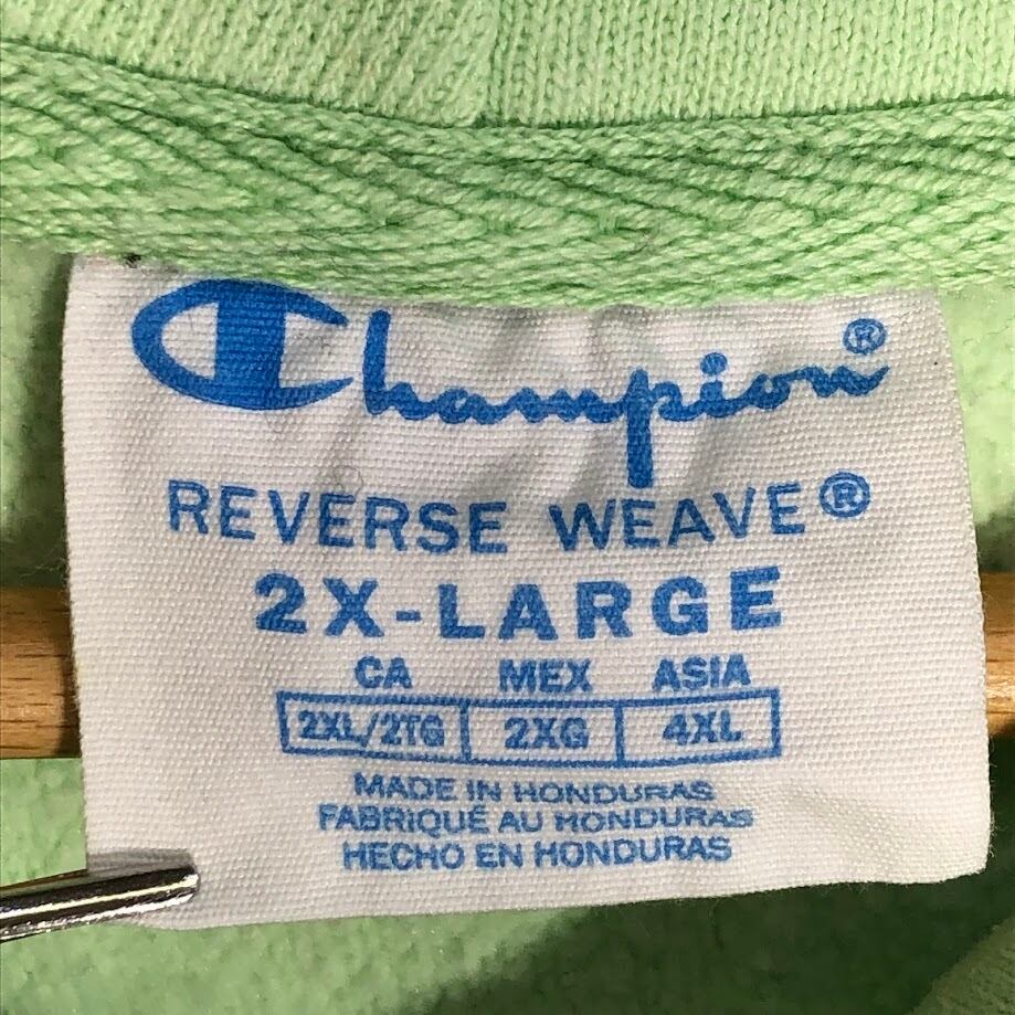 Champion REVERSE WEAVE チャンピオンリバースウィーブ パーカー フーディー プルオーバー ワンポイント刺繡 オーバーサイズ ビッグシルエット Honduras製 XXLサイズ ライトグリーン