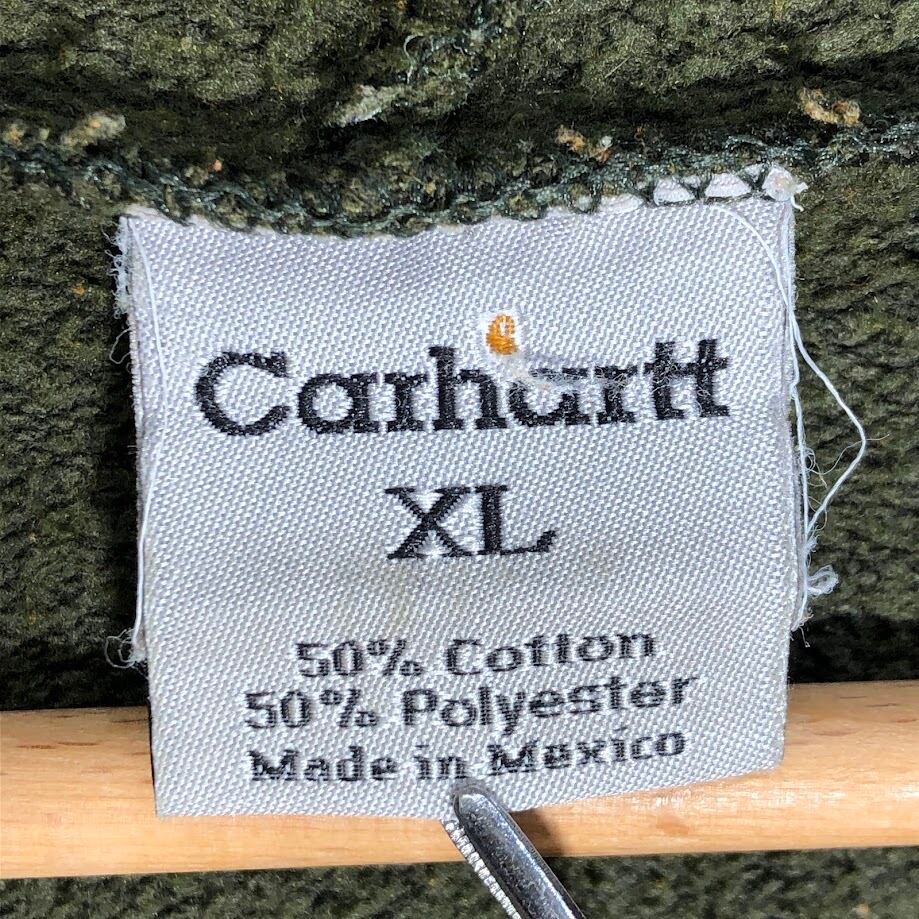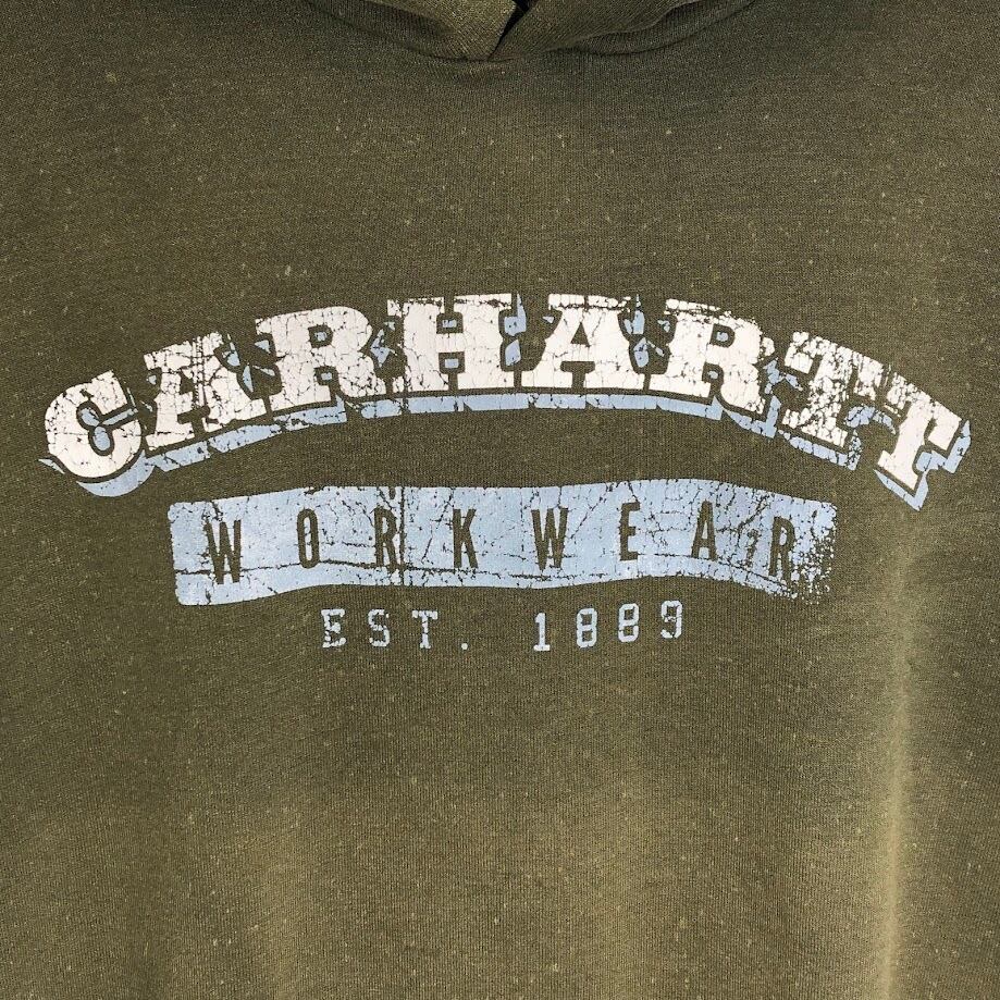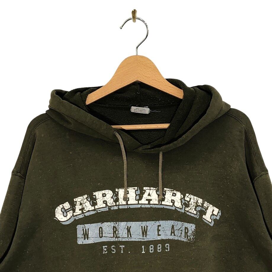 vintage ヴィンテージ Carhartt カーハート CARHARTT WORKWEAR EST-1889 パーカー フーディー プルオーバー 長袖 フロントプリント オーバーサイズ ビッグシルエット Mexico製 XLサイズ カーキグリーン