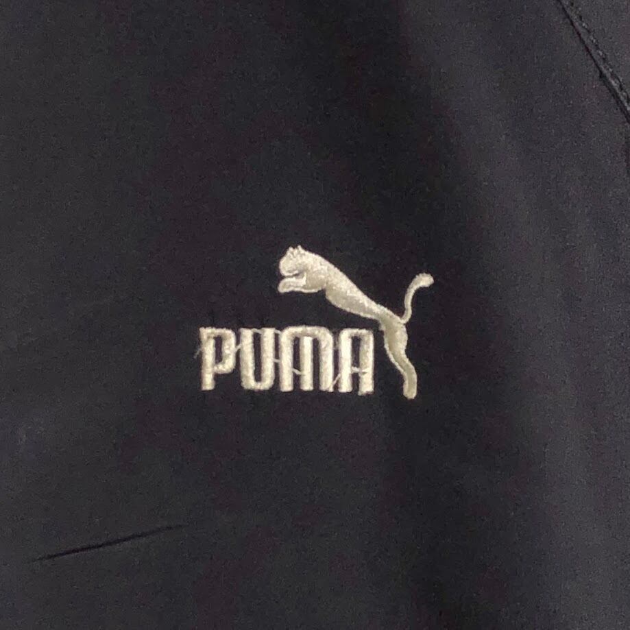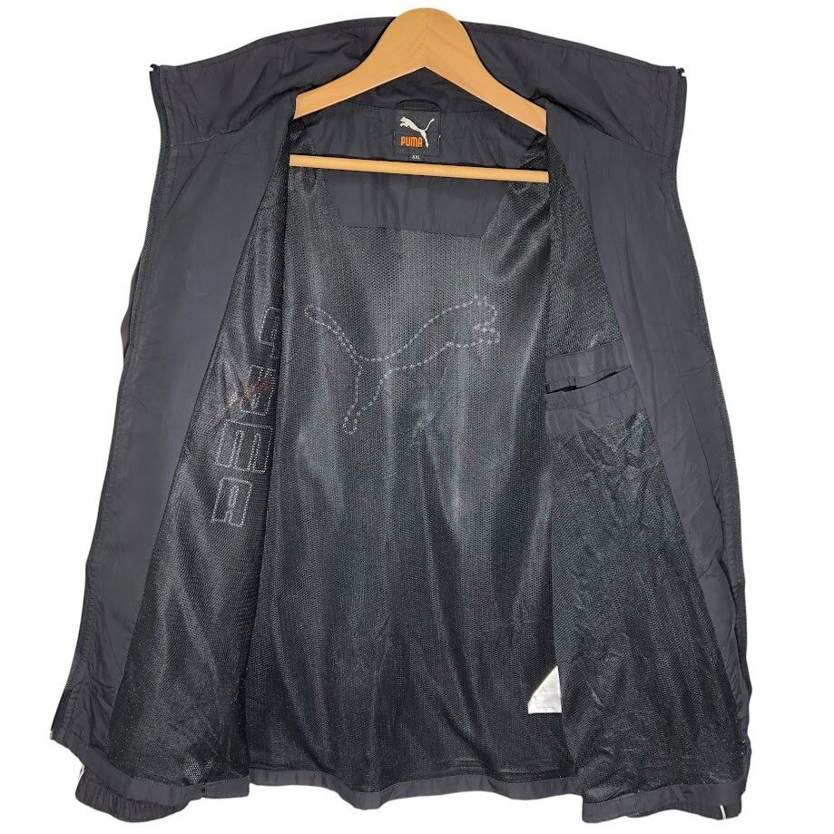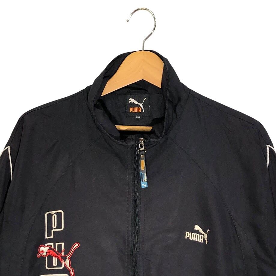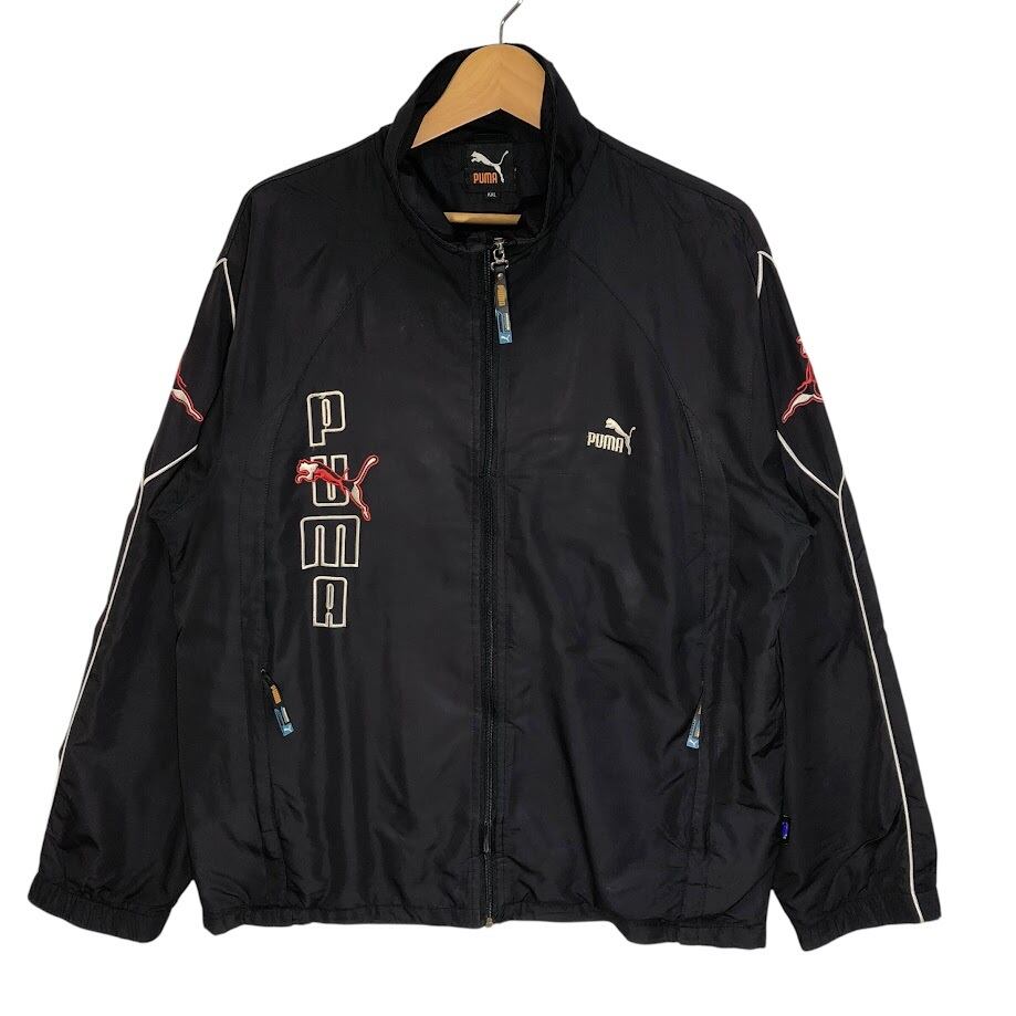 PUMA プーマ ナイロンジャケット デカロゴ ビッグロゴ ライトアウター 長袖 バック 袖刺繡 ワンポイント刺繡 オーバーサイズ ビッグシルエット トラックジャケット XXLサイズ ブラック