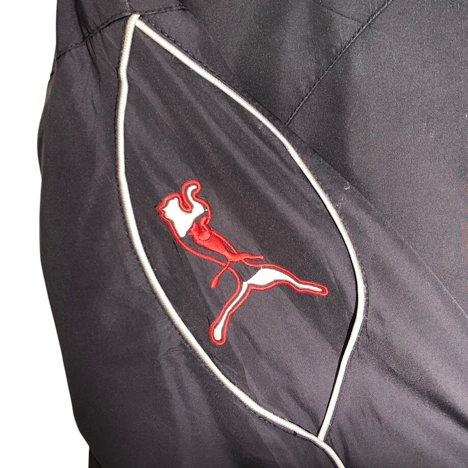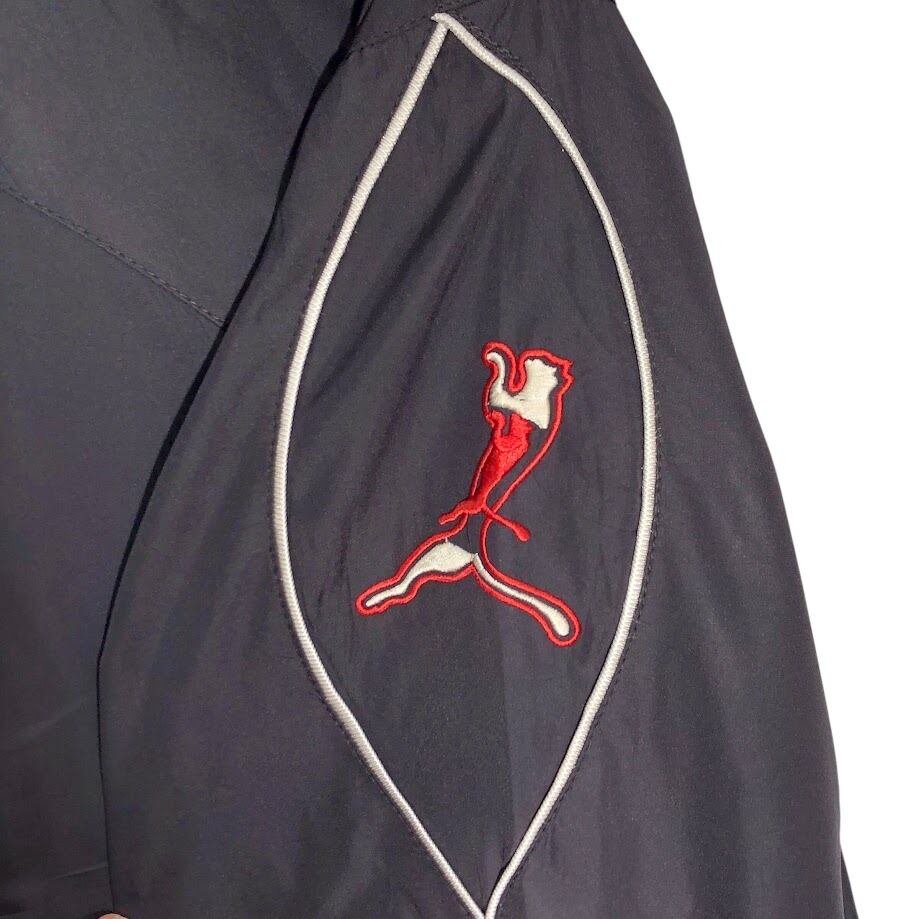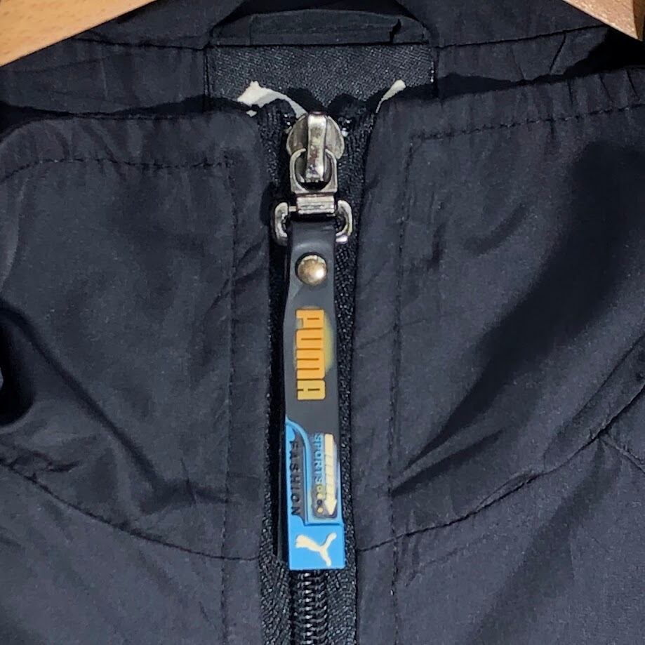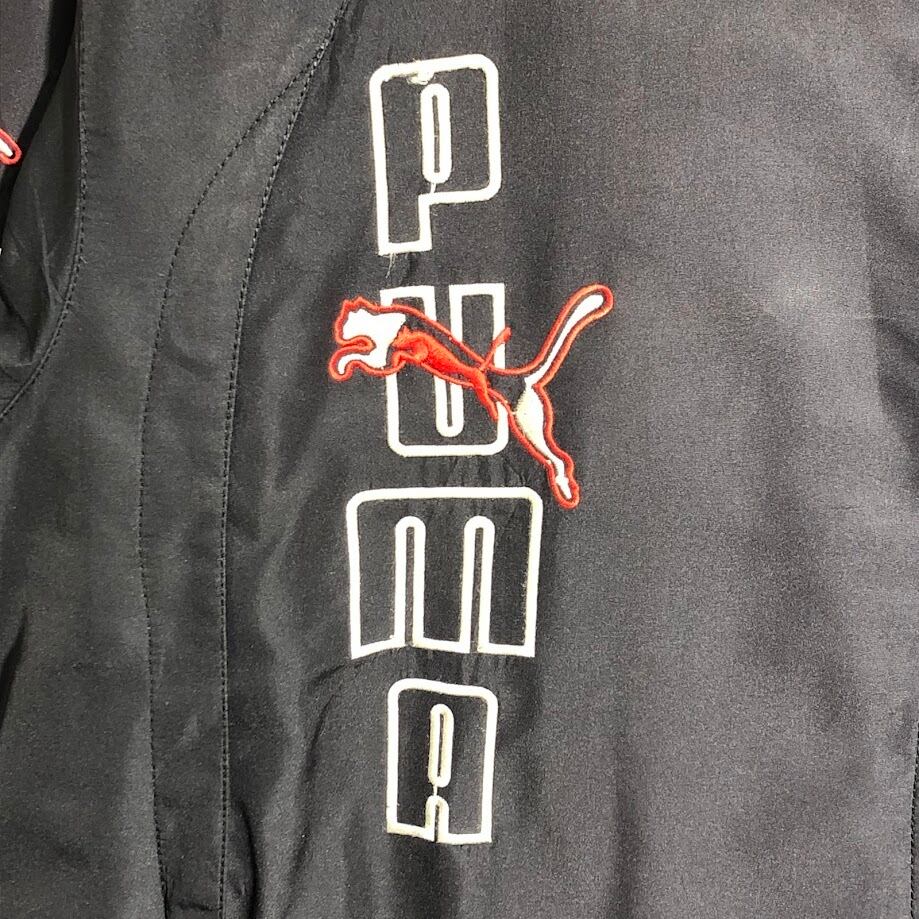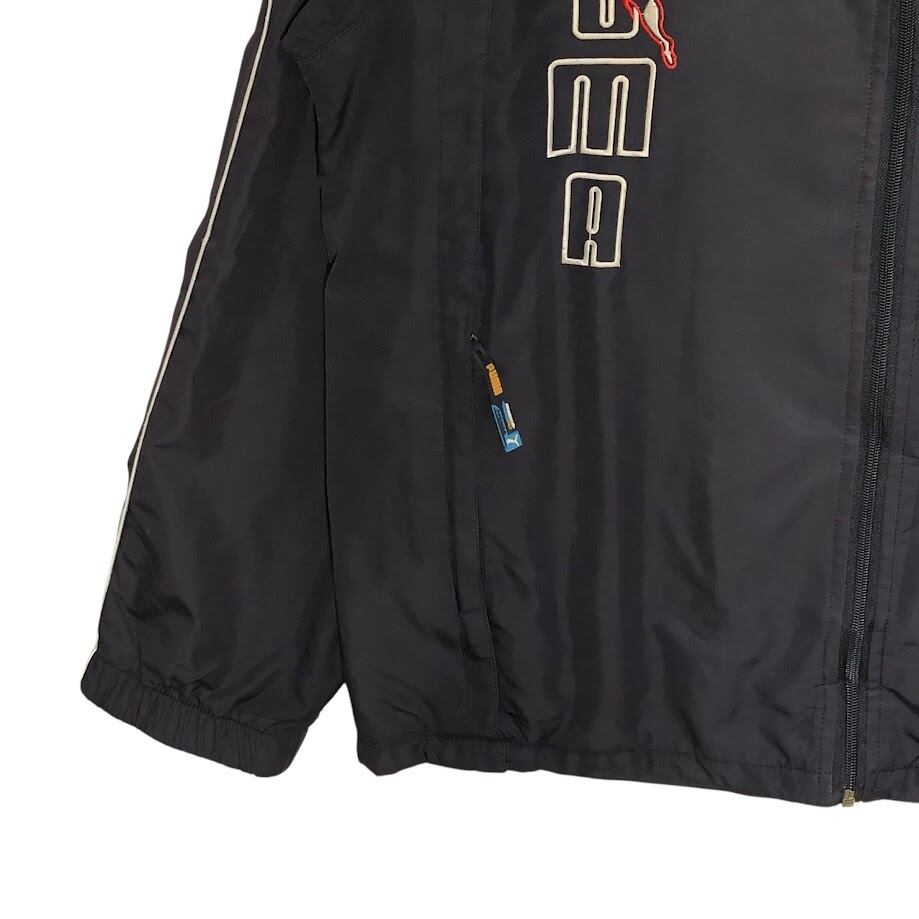 PUMA プーマ ナイロンジャケット デカロゴ ビッグロゴ ライトアウター 長袖 バック 袖刺繡 ワンポイント刺繡 オーバーサイズ ビッグシルエット トラックジャケット XXLサイズ ブラック