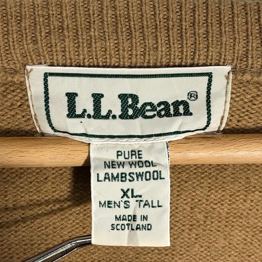 80~90's vintage 80~90年代 ヴィンテージ L.L.Bean エルエルビーン ピュアニューウールラムズウールセーター ニット セーター オーバーサイズ ビッグシルエット Vネック スコットランド製 XLサイズ ブラウン