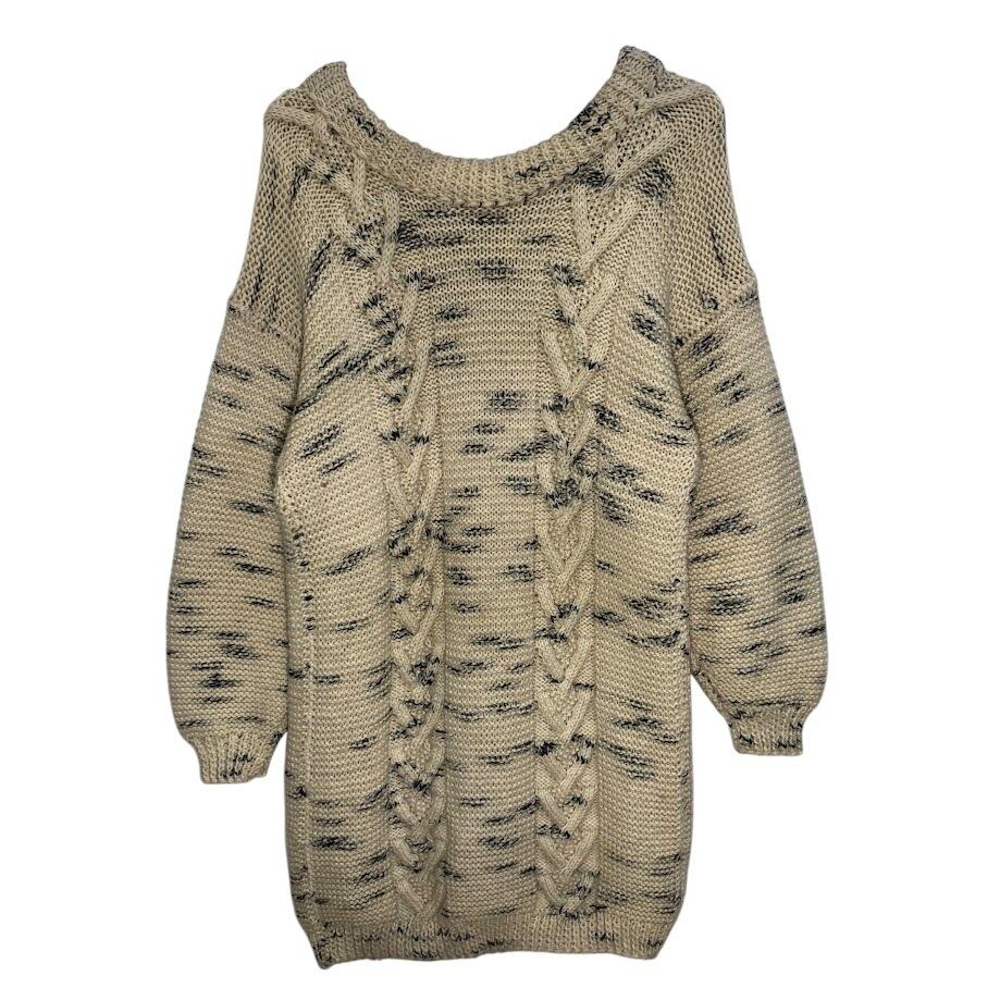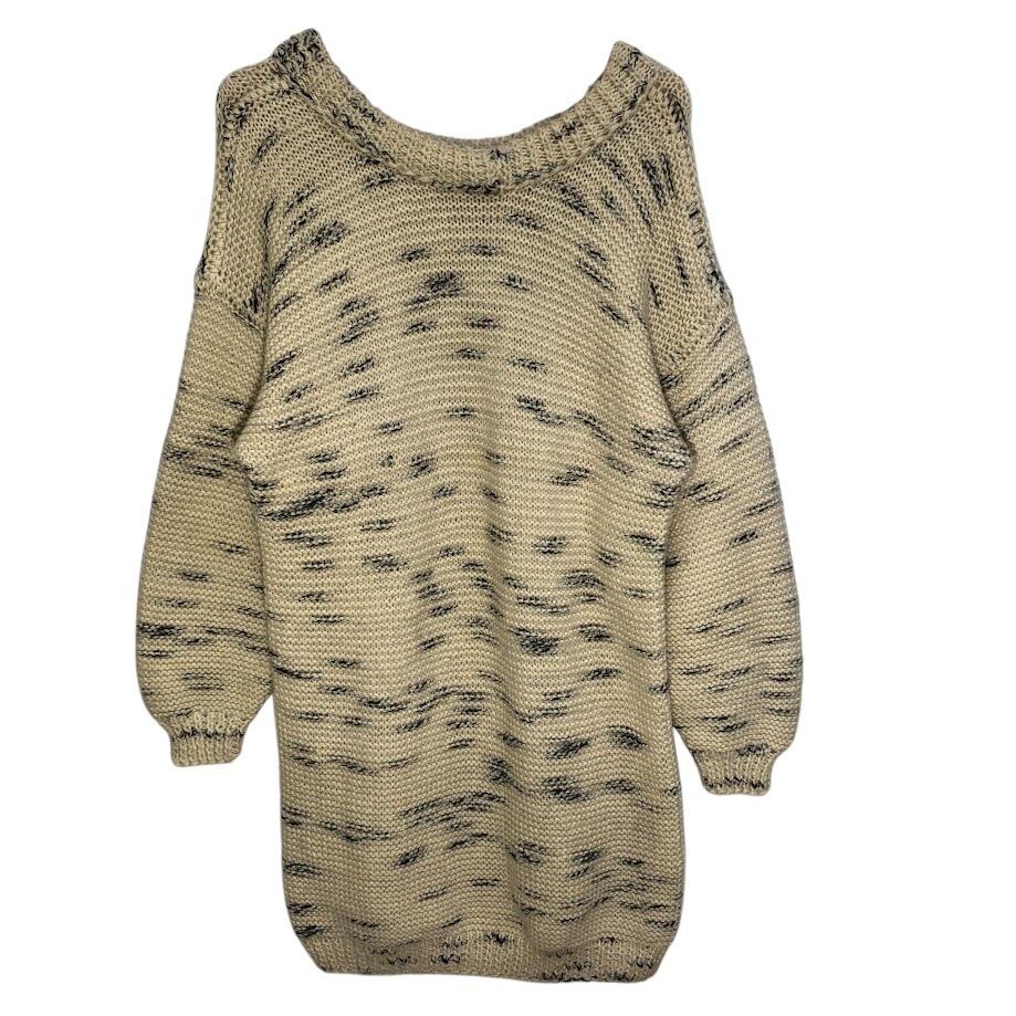 商品名:オープンメランジニット ワンピース レディース ニット セーター 長袖 オーバーサイズ ビッグシルエット クルーネック アイボリー