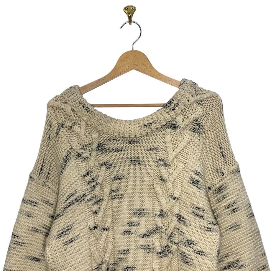 オープンメランジニット ワンピース レディース ニット セーター 長袖 オーバーサイズ ビッグシルエット クルーネック アイボリー