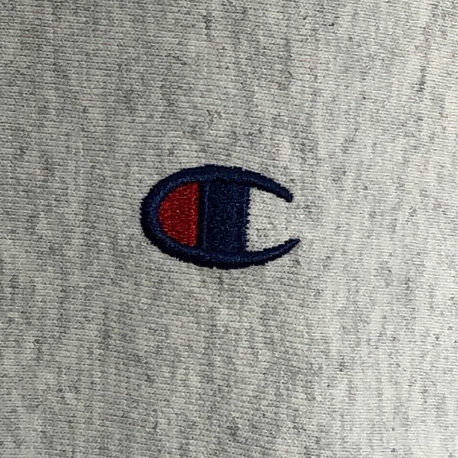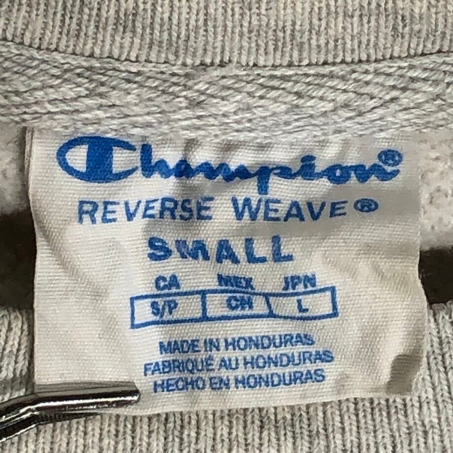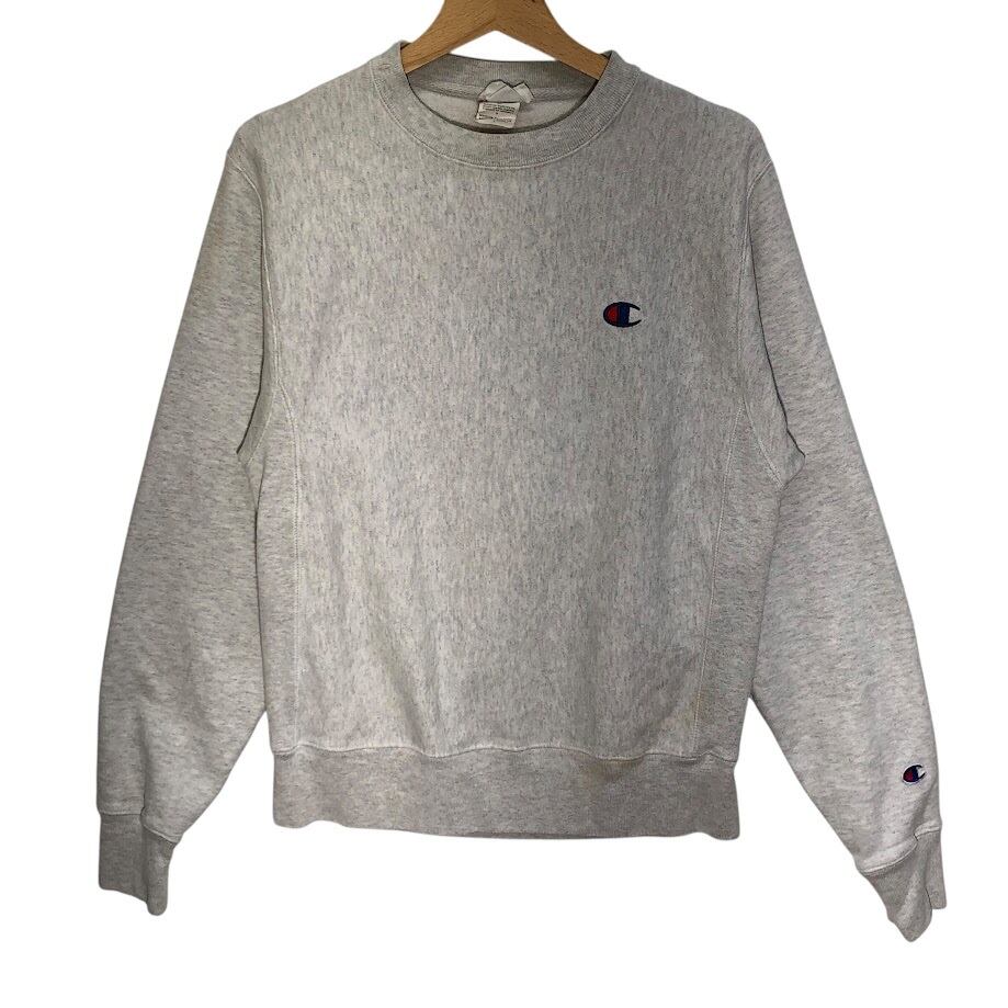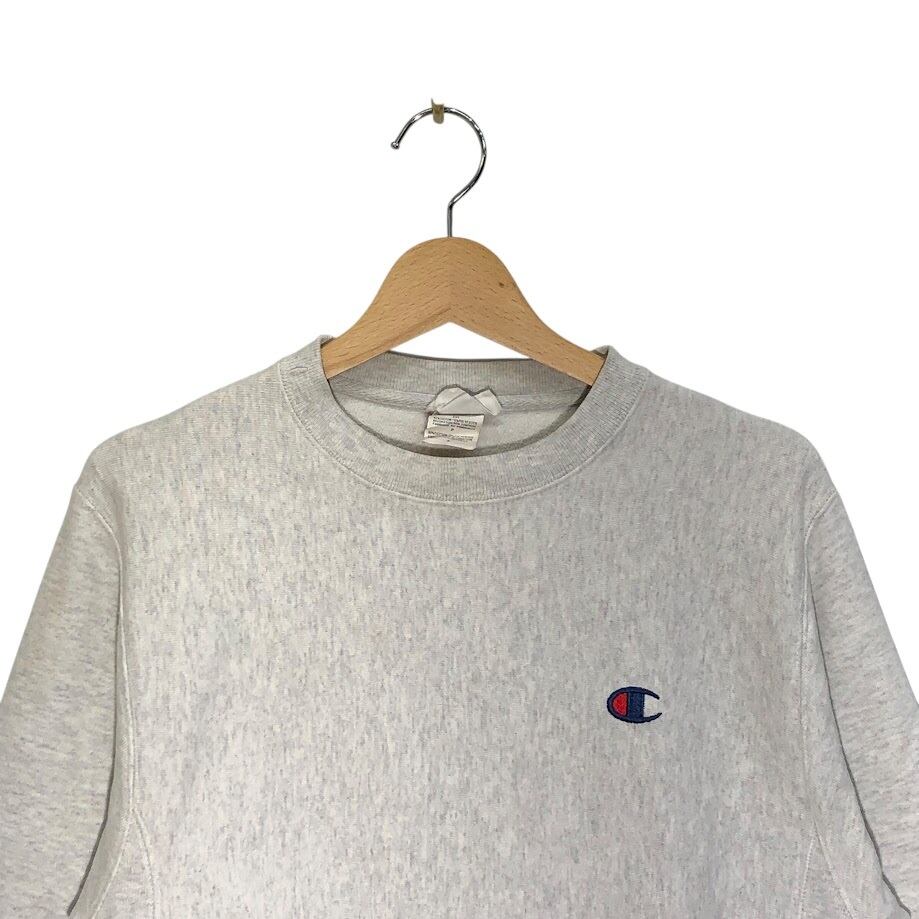 Champion REVERSE WEAVE チャンピオンリバースウィーブ スウェット トレーナー 長袖 袖刺繡 ワンポイント刺繡 クルーネック Honduras製 Sサイズ ライトグレー