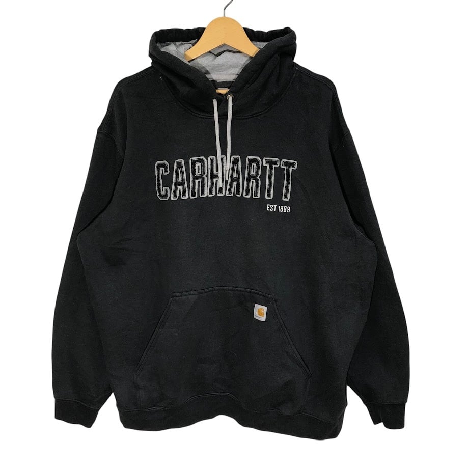 carhartt カーハート LOOSE FIT パーカー フーディー プルオーバー フロン刺繍 オーバーサイズ ビッグシルエット Mexico製 2XLサイズ ブラック グレー