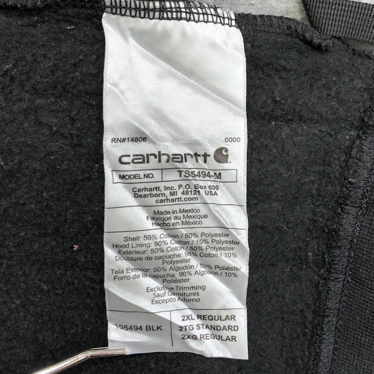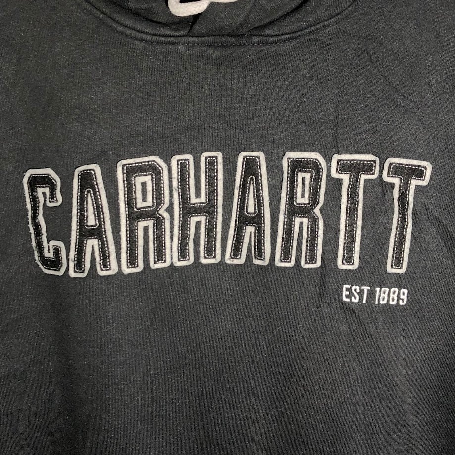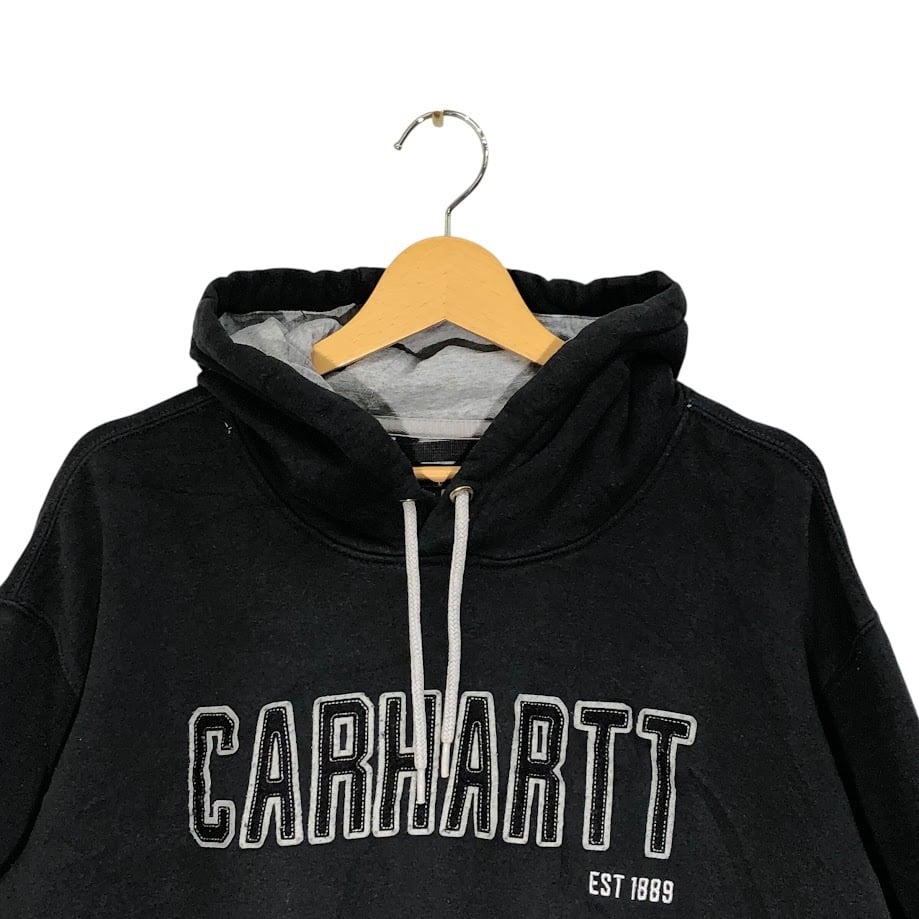 商品名:carhartt カーハート LOOSE FIT パーカー フーディー プルオーバー フロン刺繍 オーバーサイズ ビッグシルエット Mexico製 2XLサイズ ブラック グレー