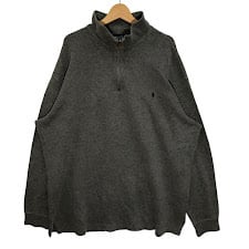 商品名:90's vintage 90年代 ヴィンテージ Polo by Ralph Lauren ポロバイラルフローレン ニット セーター ポニー刺繡 ハーフジップ 長袖 ワンポイント刺繡 オーバーサイズ ビッグシルエット 2XLサイズ グレー