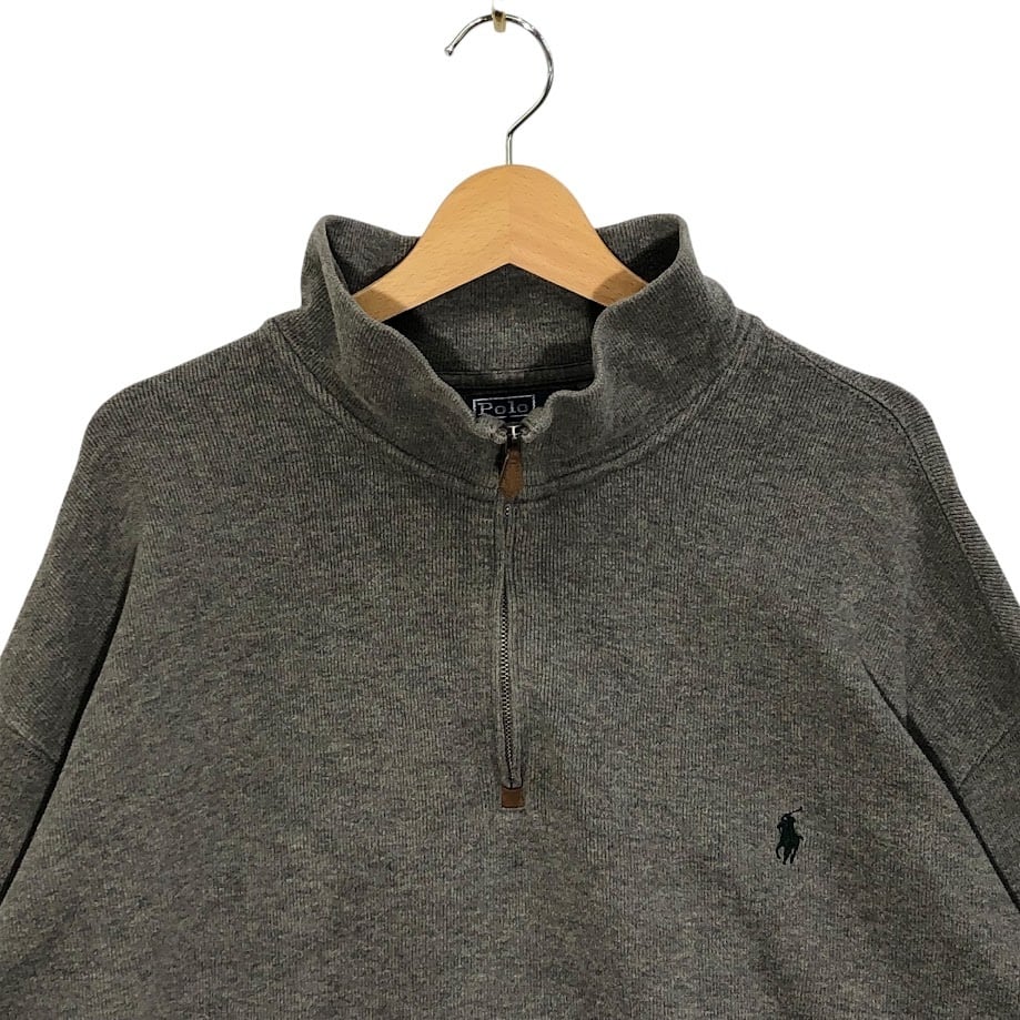 90's vintage 90年代 ヴィンテージ Polo by Ralph Lauren ポロバイラルフローレン ニット セーター ポニー刺繡 ハーフジップ 長袖 ワンポイント刺繡 オーバーサイズ ビッグシルエット 2XLサイズ グレー