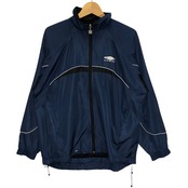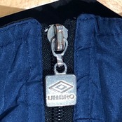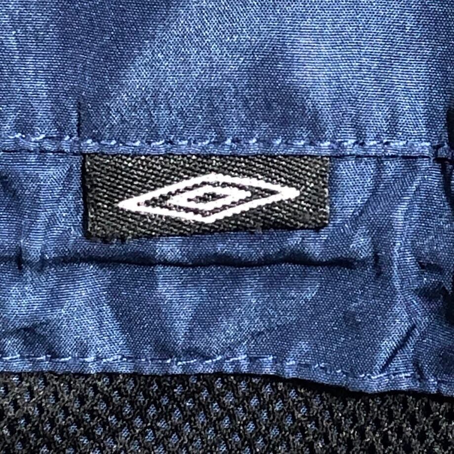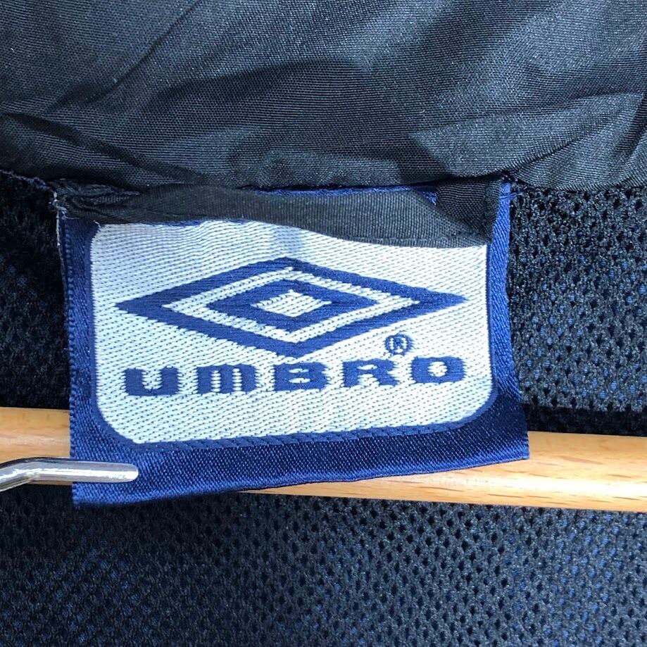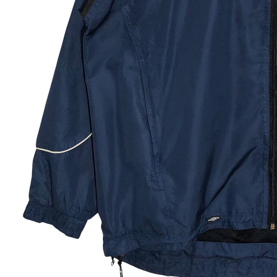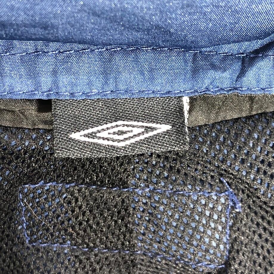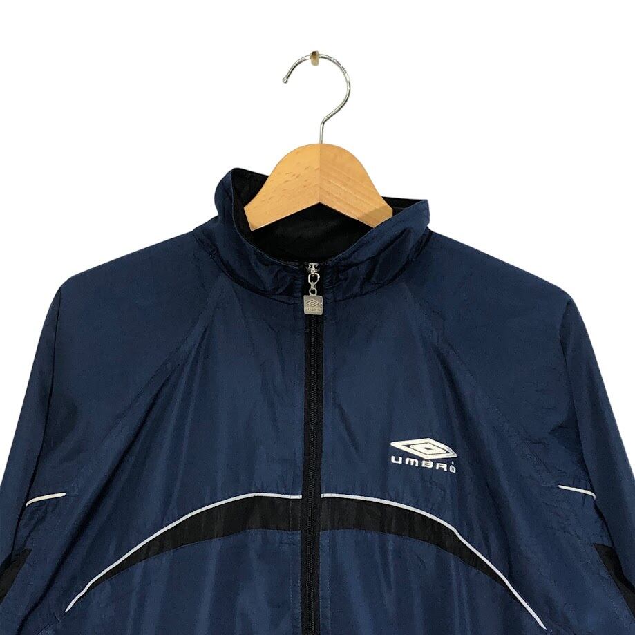 90's vintage 90年代 ヴィンテージ UMBRO アンブロ フード収納 ライトアウター ナイロンジャケット ドローコード フロント刺繡 China製 Sサイズ ネイビー