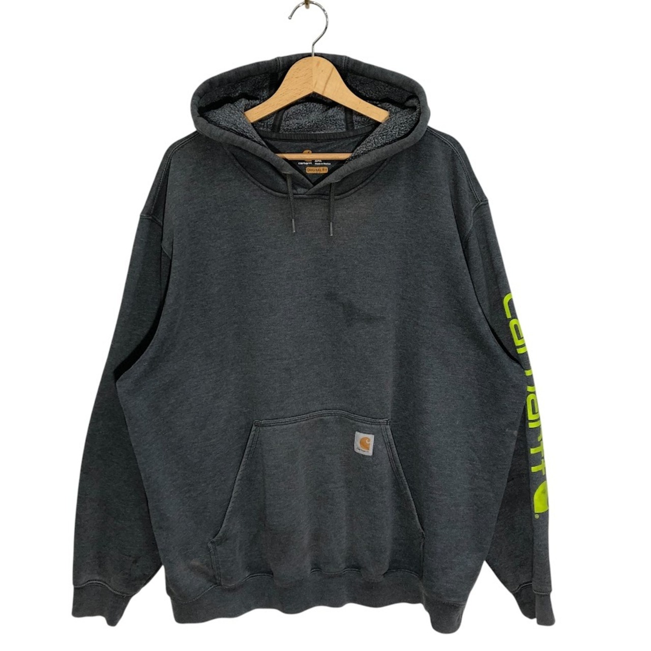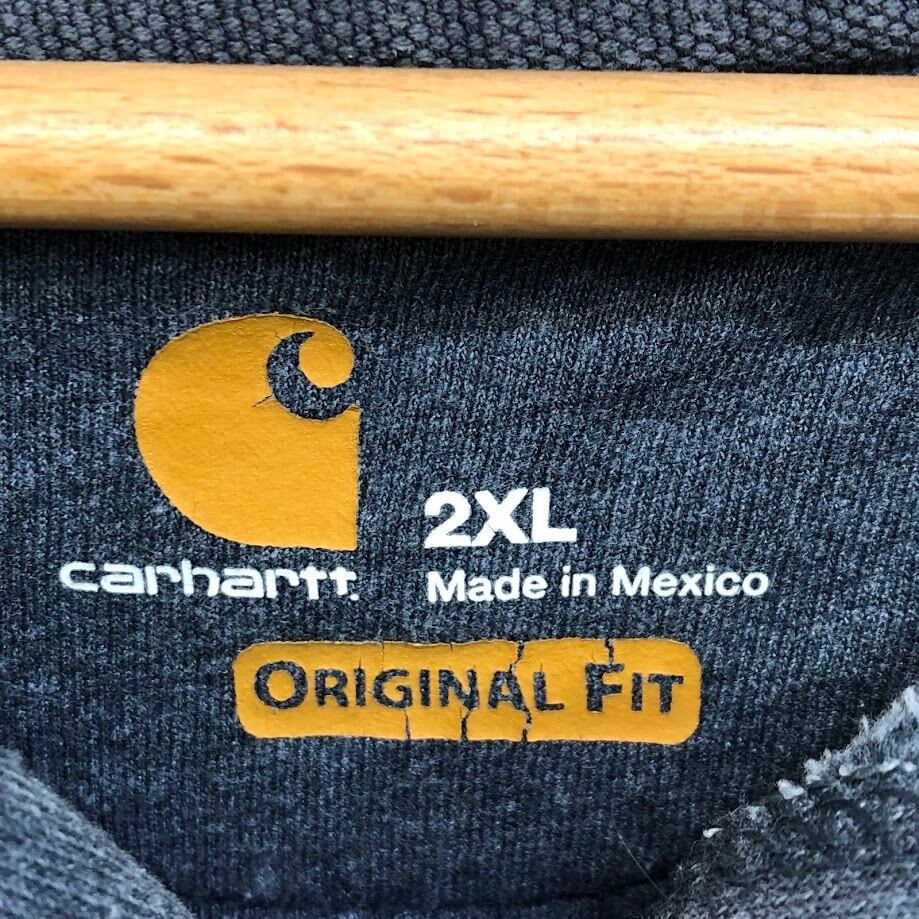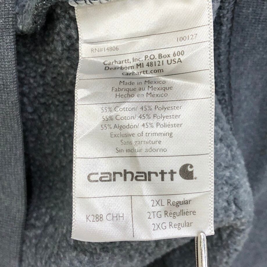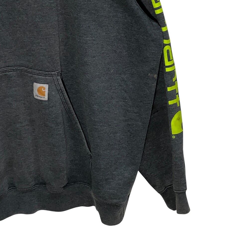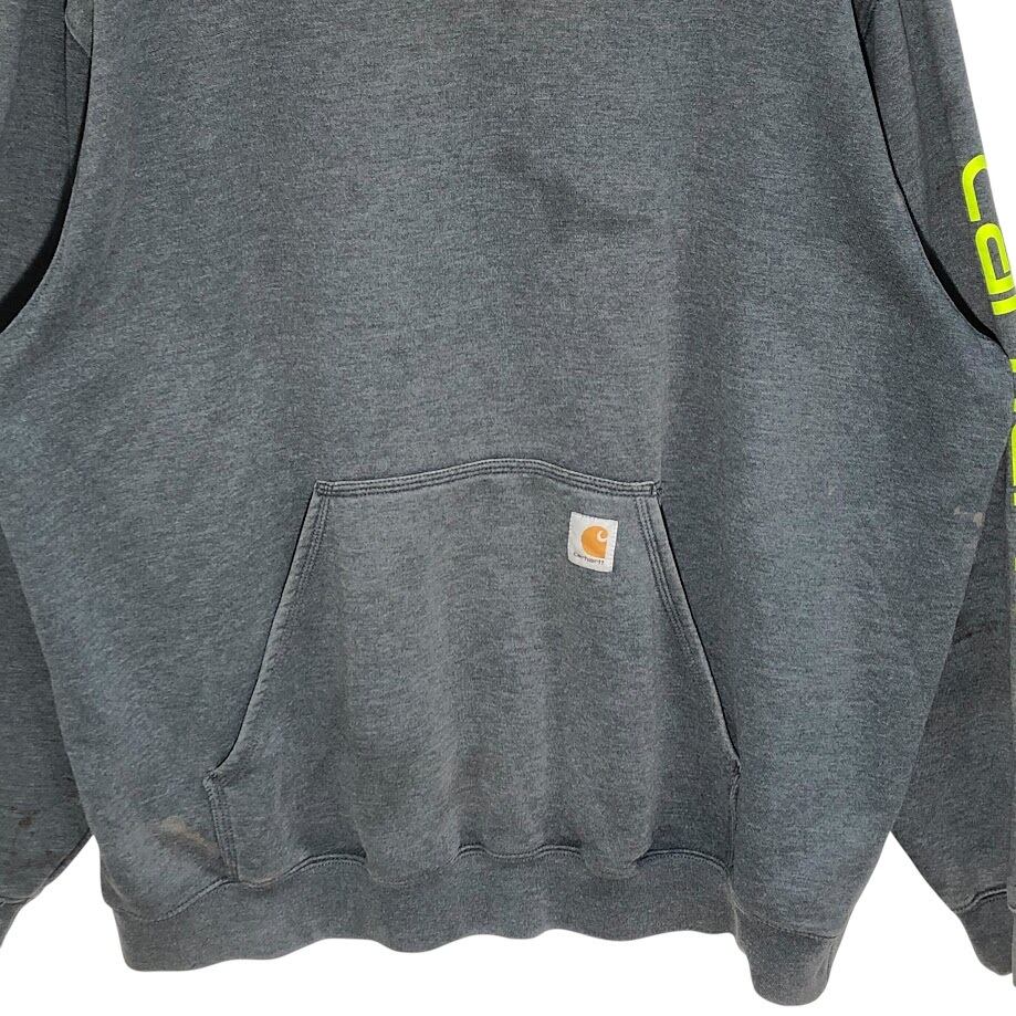 Carhartt/カーハート ORIGINAL FIT Mexico製 パーカー フーディー プルオーバー 袖プリント ワンポイント袖刺繡 オーバーサイズ ビッグシルエット 2XLサイズ グレー