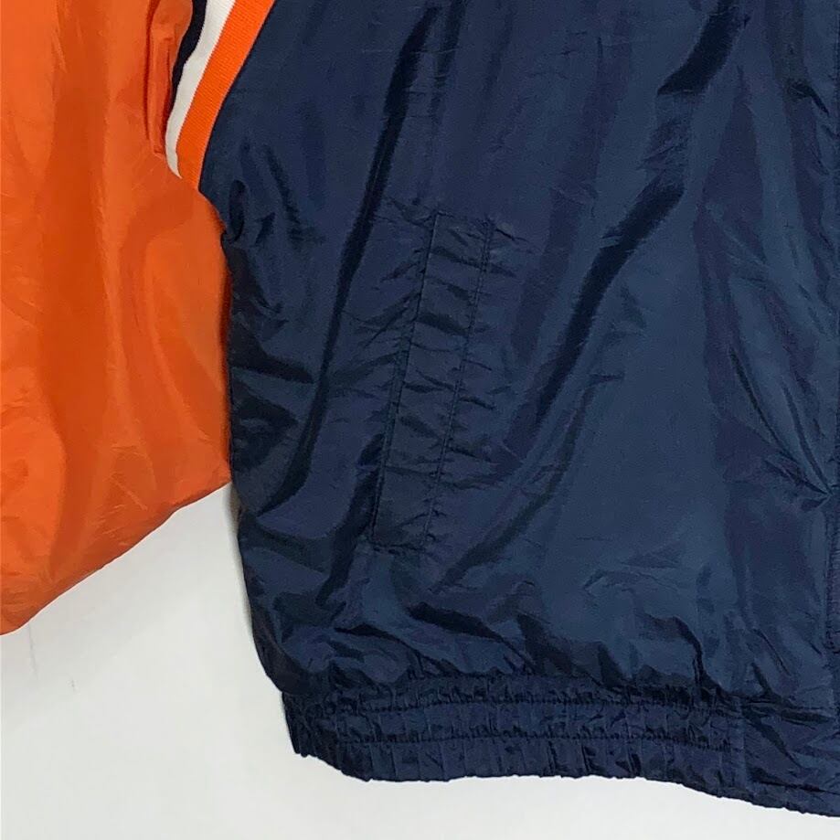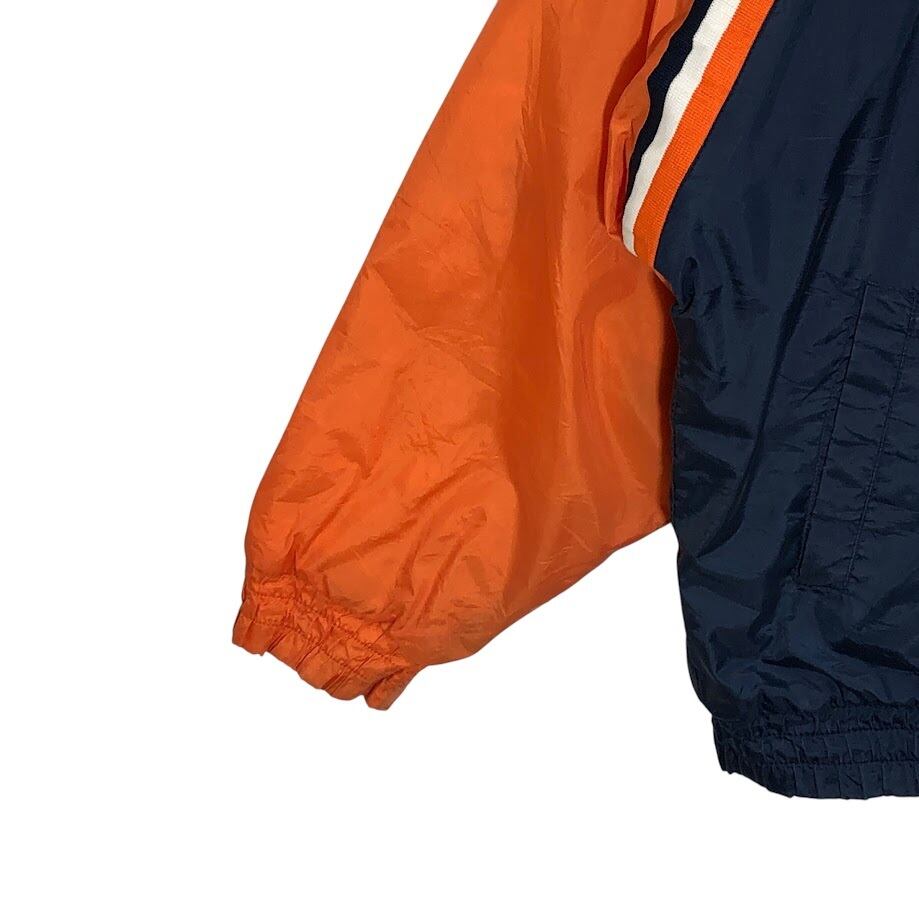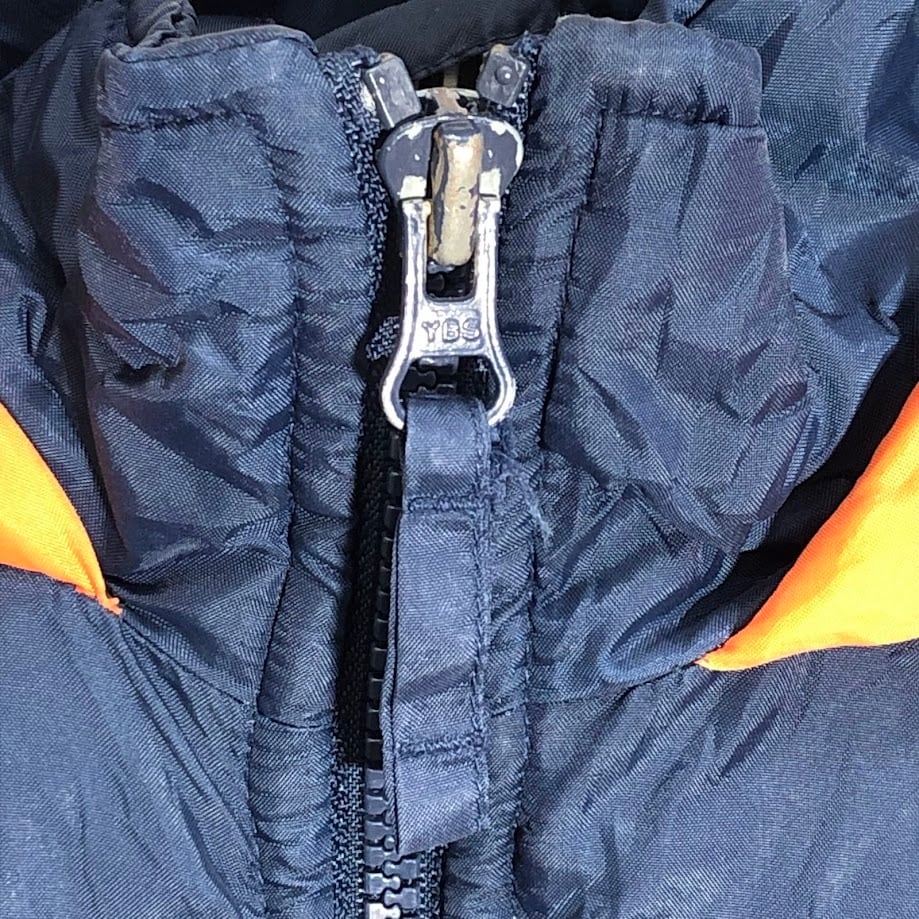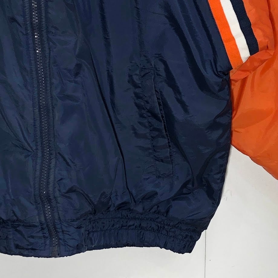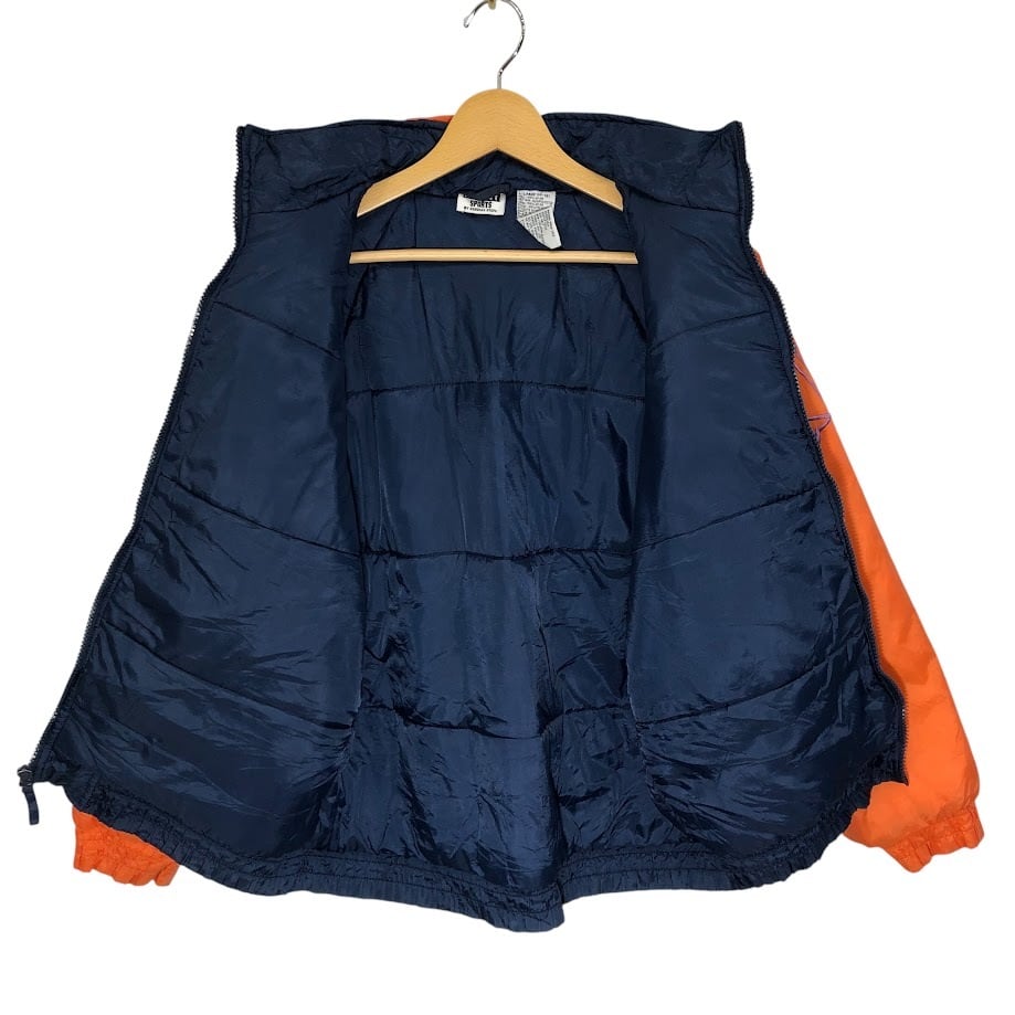 商品名:vintage ヴィンテージ HIBBETT SPORTS BY GENUINE STUFF ナイロン中綿ジャケット VIRGINIA フード アウター ジャケット ブルゾン 企業ロゴ刺繍 Bangladesh製 Lサイズ ネイビー オレンジ