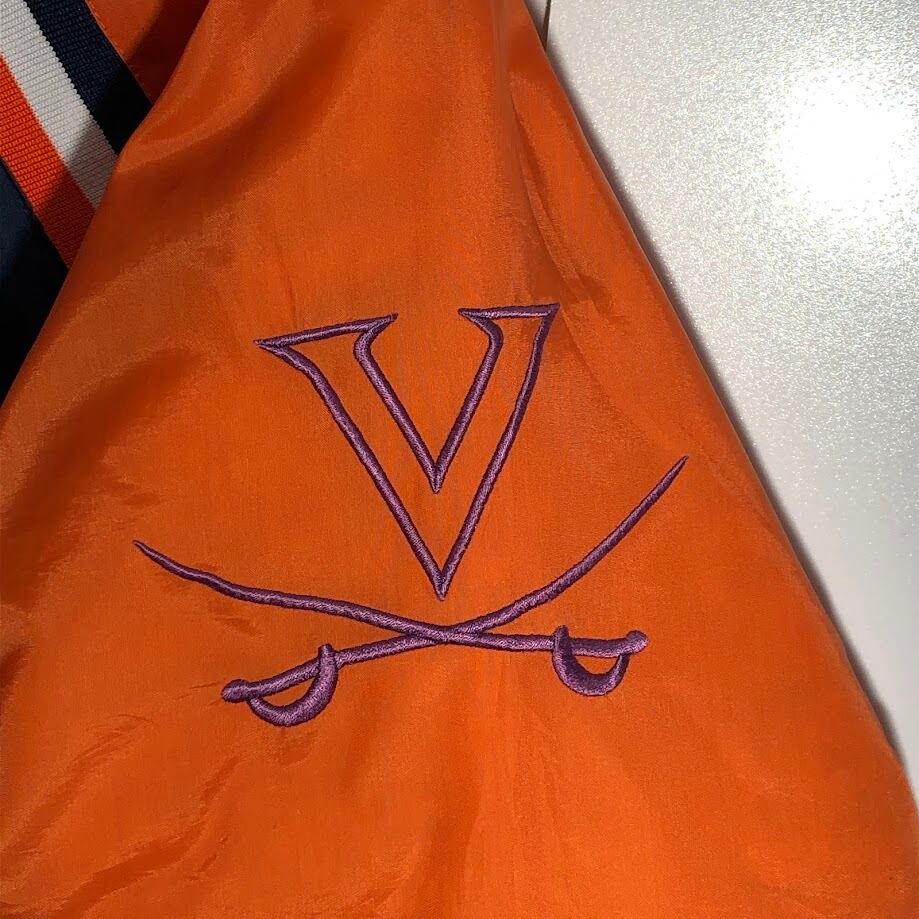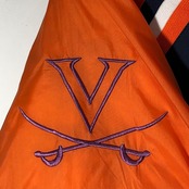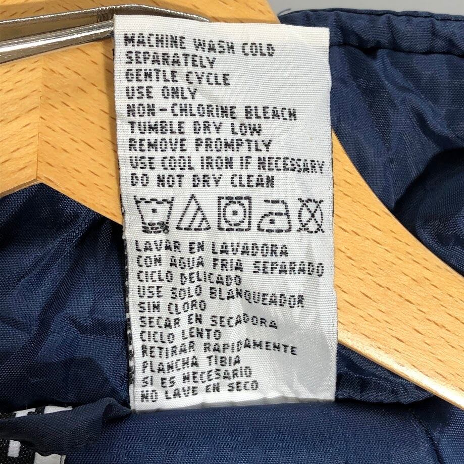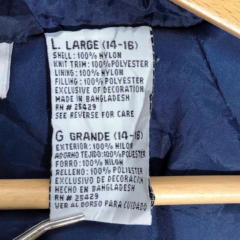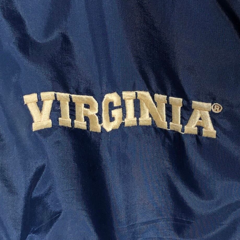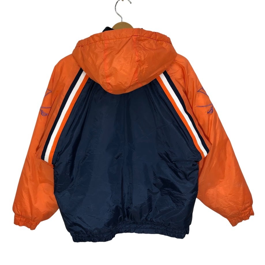 商品名:vintage ヴィンテージ HIBBETT SPORTS BY GENUINE STUFF ナイロン中綿ジャケット VIRGINIA フード アウター ジャケット ブルゾン 企業ロゴ刺繍 Bangladesh製 Lサイズ ネイビー オレンジ