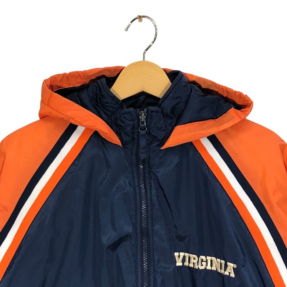 vintage ヴィンテージ HIBBETT SPORTS BY GENUINE STUFF ナイロン中綿ジャケット VIRGINIA フード アウター ジャケット ブルゾン 企業ロゴ刺繍 Bangladesh製 Lサイズ ネイビー オレンジ