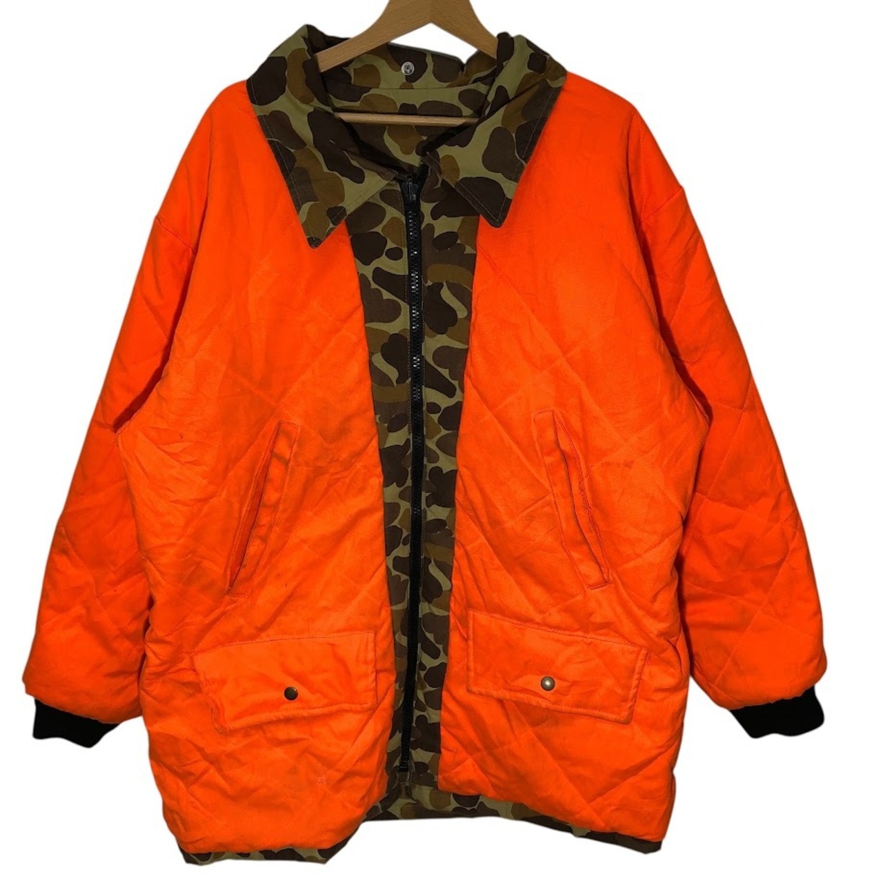 商品名:80~90's vintage 80~90年代 ヴィンテージ Gamehide ダックハンターカモフラージュ柄 リバーシブル中綿ジャケット カモ リアルツリー 迷彩 アウター Taiwan製 Lサイズ カーキ オレンジ