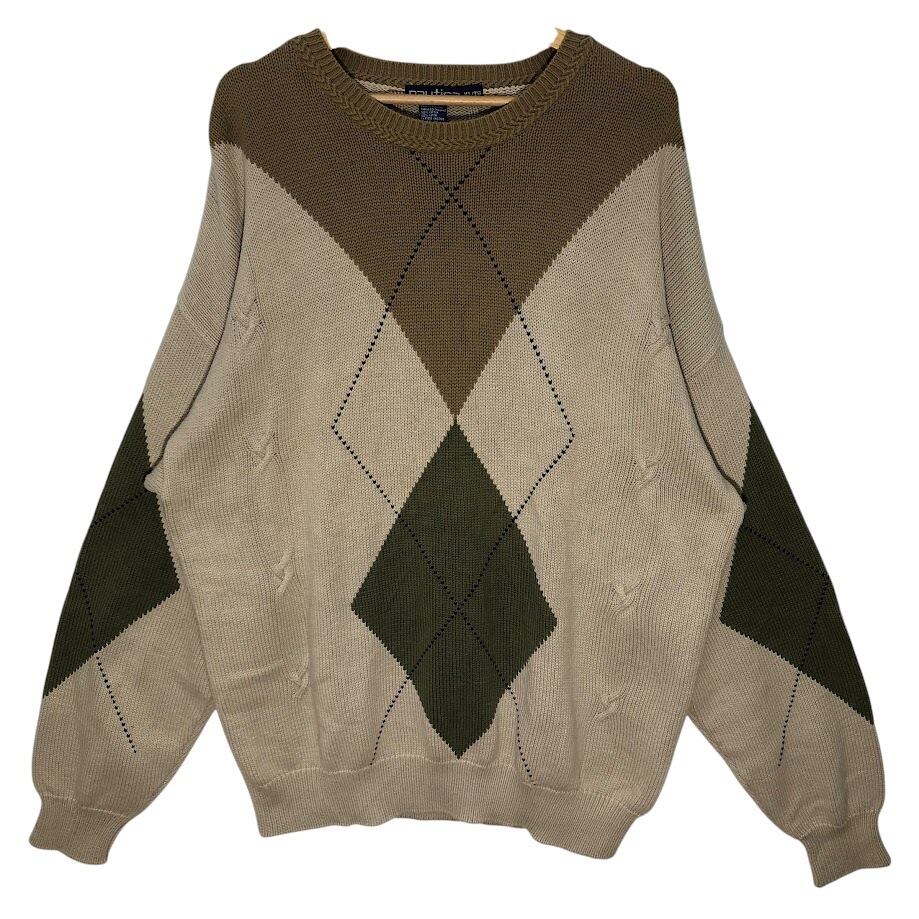 商品名:90's vintage 90年代 ヴィンテージ nautica ノーティカ アーガイル ニット セーター オーバーサイズ ビッグシルエット Thailand製 XLサイズ ブラウン ベージュ グリーン
