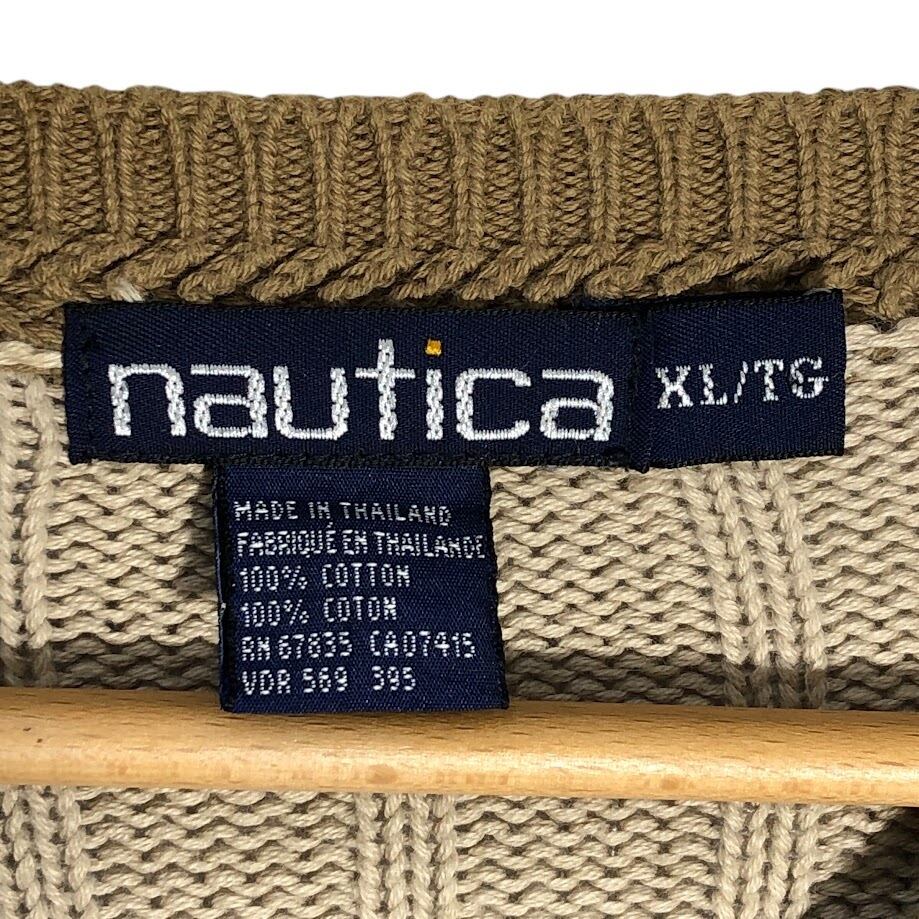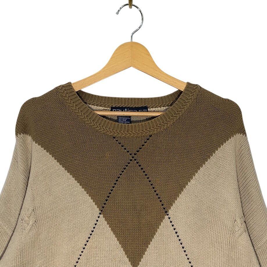 90's vintage 90年代 ヴィンテージ nautica ノーティカ アーガイル ニット セーター オーバーサイズ ビッグシルエット Thailand製 XLサイズ ブラウン ベージュ グリーン