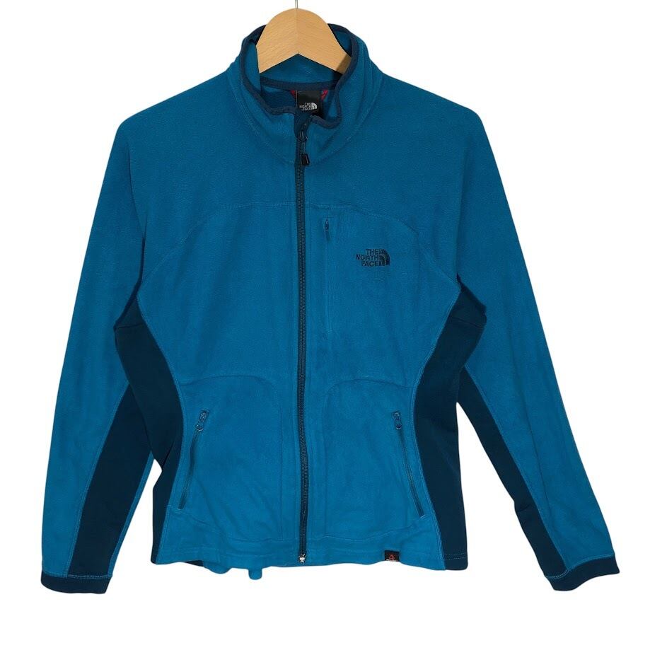 THE NORTH FACE ザノースフェイス フルジップ フリースジャケット ライトアウター 長袖 ワンポイント刺繡 Philippines製 Women's Lサイズ ブルー