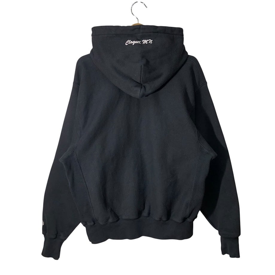 Champion REVERSE WEAVE チャンピオンリバースウィーブ パーカー フーディー プルオーバー 袖刺繍 企業ロゴプリント ブラック