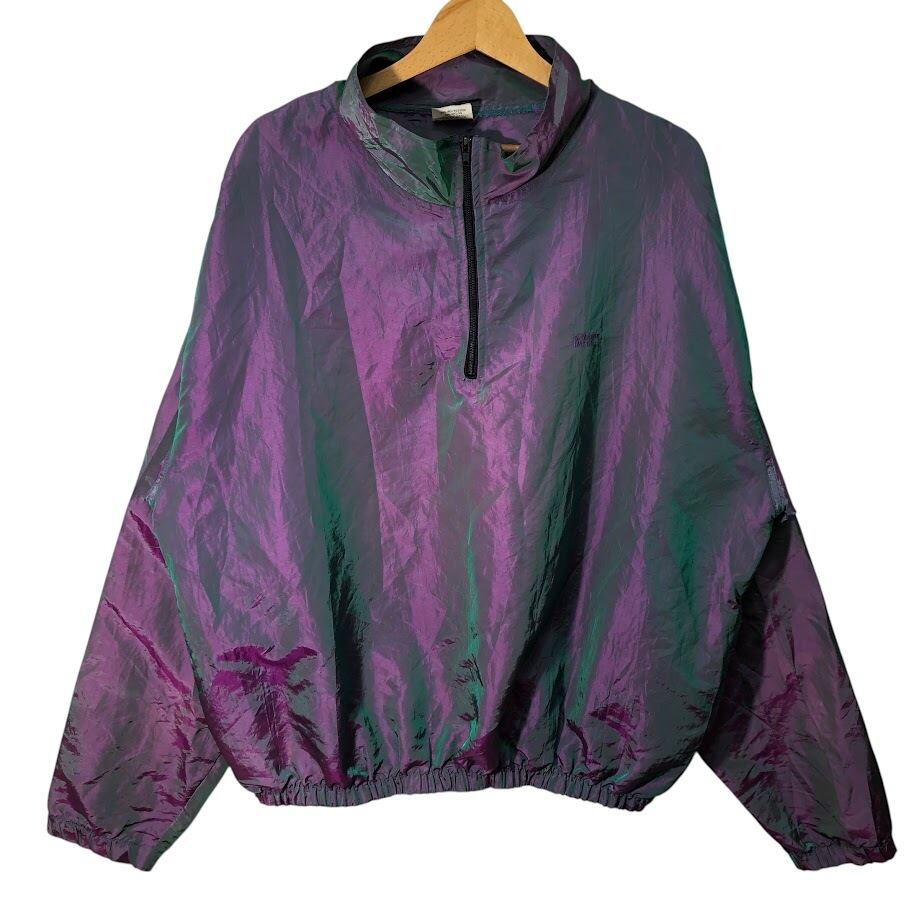 ヴィンテージ SUNERGY GARMENTS マジョーラポケット SHARPRE IMAGE ハーフジップ ナイロンプルオーバー ナイロンジャケット 長袖 ワンポイント刺繡 USA製 ONE SIZE パープル