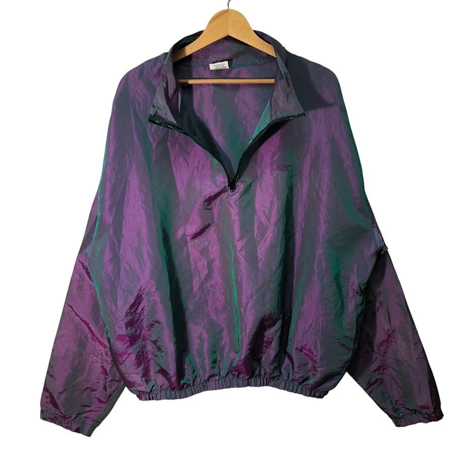商品名:ヴィンテージ SUNERGY GARMENTS マジョーラポケット SHARPRE IMAGE ハーフジップ ナイロンプルオーバー ナイロンジャケット 長袖 ワンポイント刺繡 USA製 ONE SIZE パープル