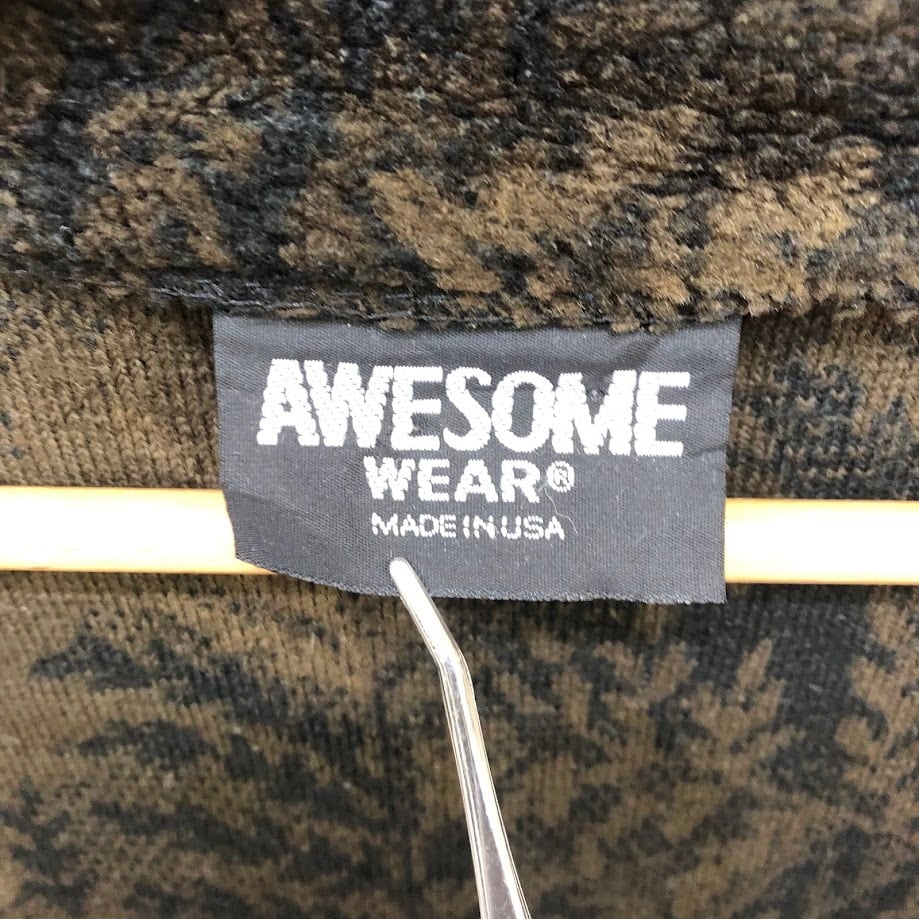 90's vintage 90年代 ヴィンテージ AWESOME WEAR フルジップ フリースジャケット 迷彩 リアルツリー ライトアウター 長袖 オーバーサイズ ビッグシルエット USA製 Lサイズ ブラウン