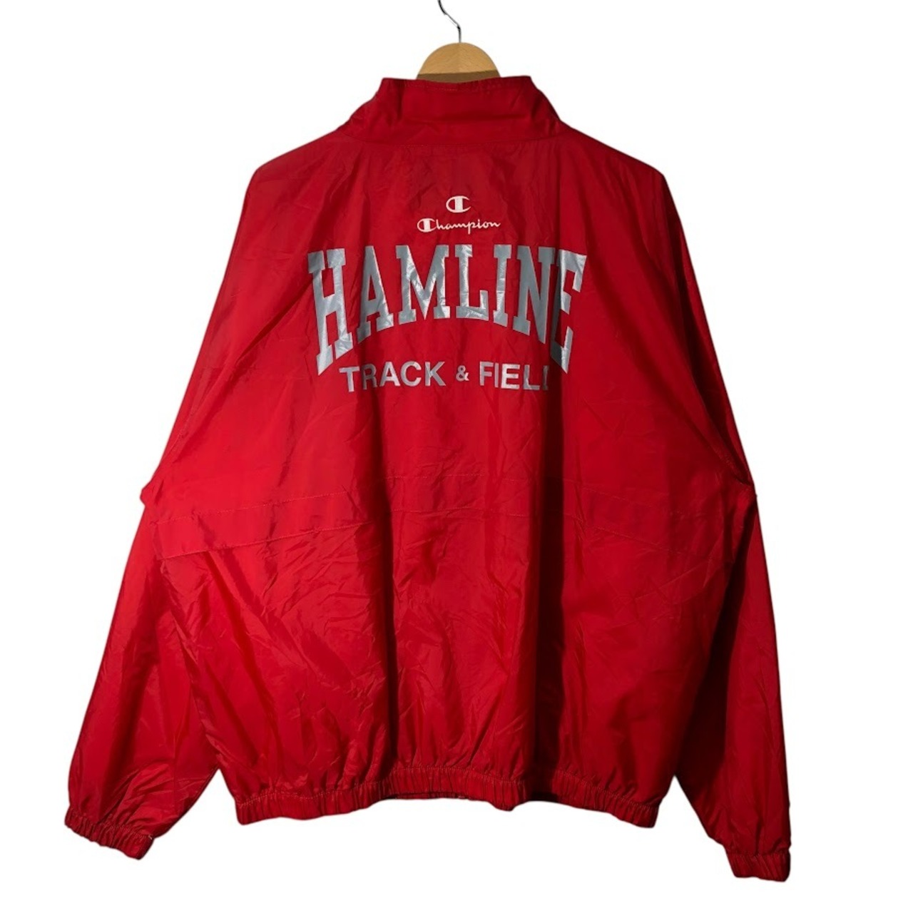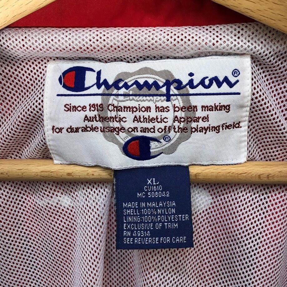 90's vintage 90年代 ヴィンテージ Champion チャンピオン カレッジプリント ナイロンジャケット ヒューストン大学 クーガーズ ライトアウター フロントバックプリント オーバーサイズ ビッグシルエット マレーシア製 XLサイズ レッド