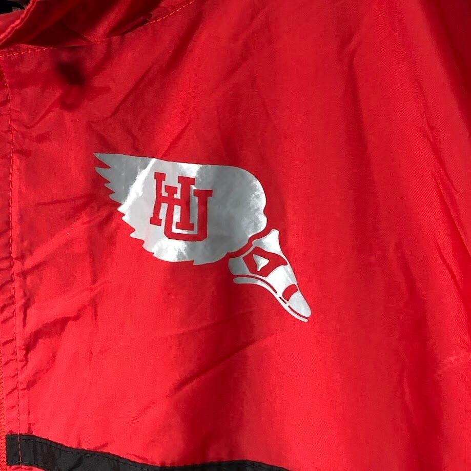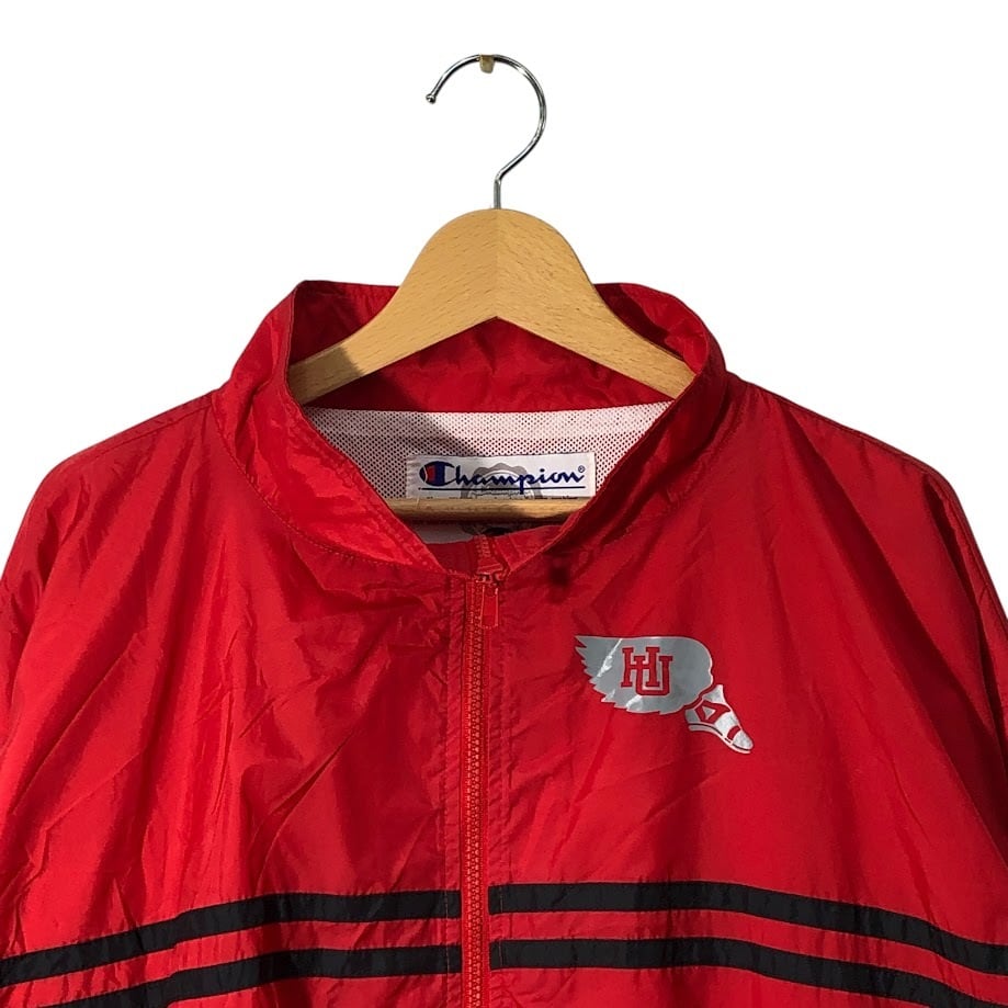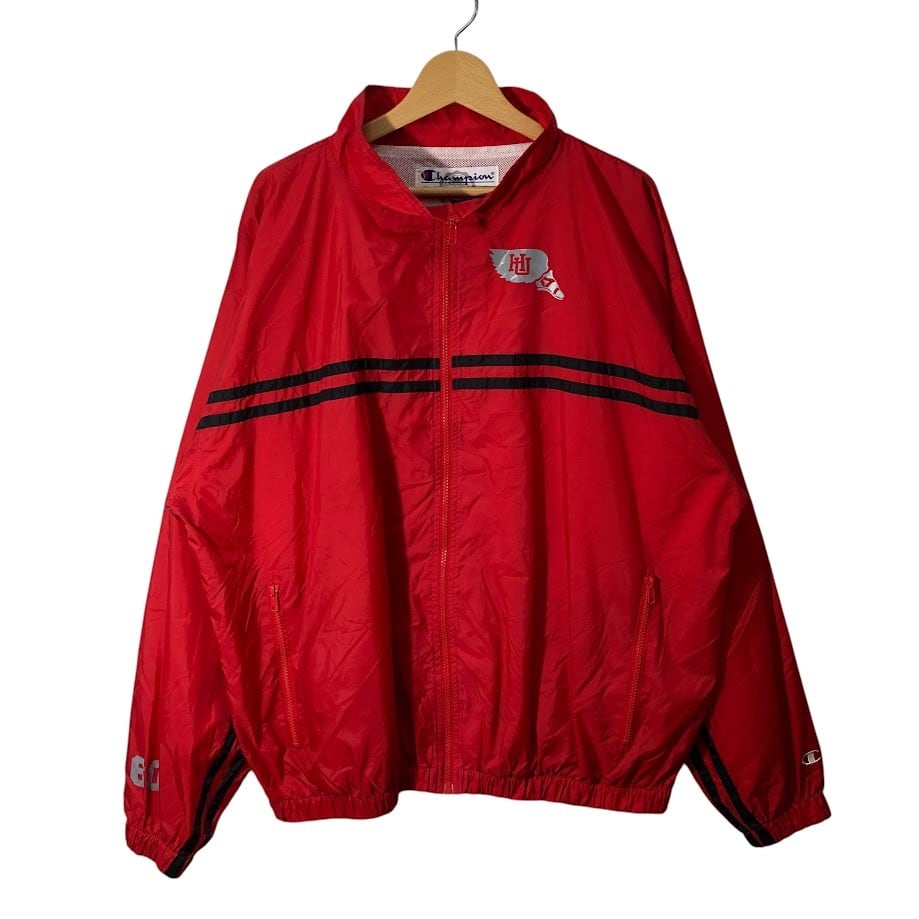商品名:90's vintage 90年代 ヴィンテージ Champion チャンピオン カレッジプリント ナイロンジャケット ヒューストン大学 クーガーズ ライトアウター フロントバックプリント オーバーサイズ ビッグシルエット マレーシア製 XLサイズ レッド