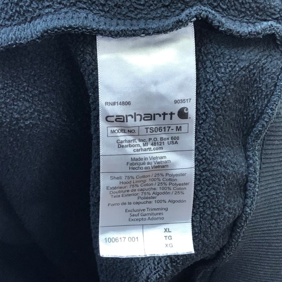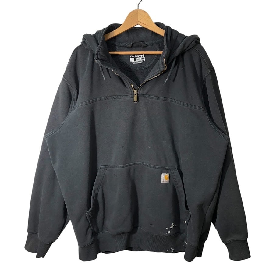 Carhartt カーハート LOOSE FIT ハーフジップ パーカー フーディー プルオーバー ワンポイント刺繡 オーバーサイズ ビッグシルエット Vietnam製 XLサイズ ブラック