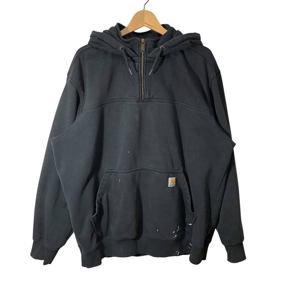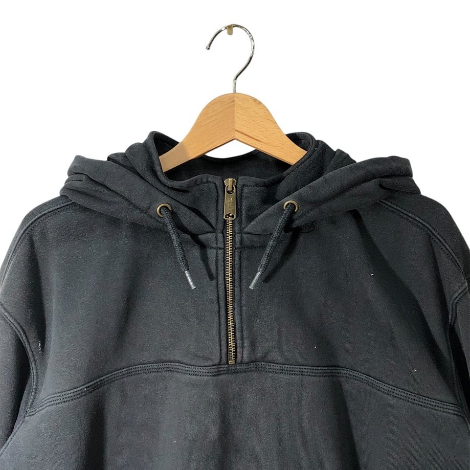 商品名:Carhartt カーハート LOOSE FIT ハーフジップ パーカー フーディー プルオーバー ワンポイント刺繡 オーバーサイズ ビッグシルエット Vietnam製 XLサイズ ブラック