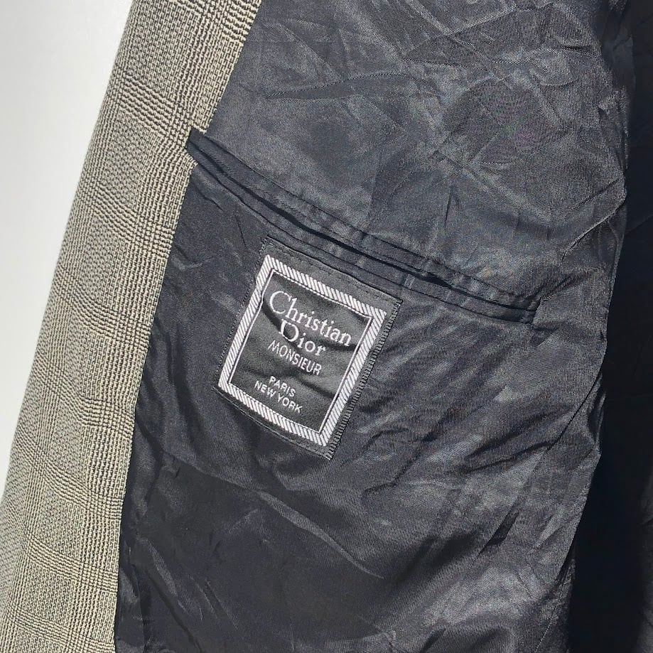 80's vintage 80年代 ヴィンテージ Joslins Christian Dior クリスチャンディオール MONSIEUR テーラードジャケット チェック柄 アウター 長袖 オーバーサイズ ビッグシルエット USA製 ブラック アイボリー