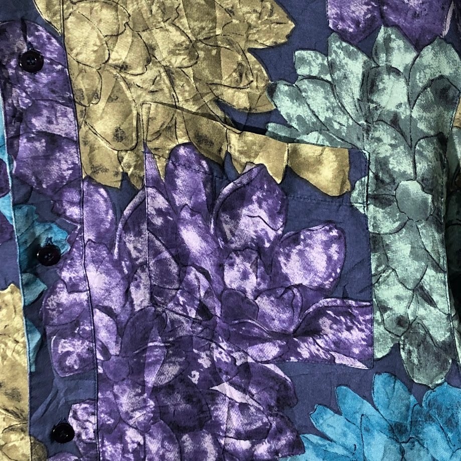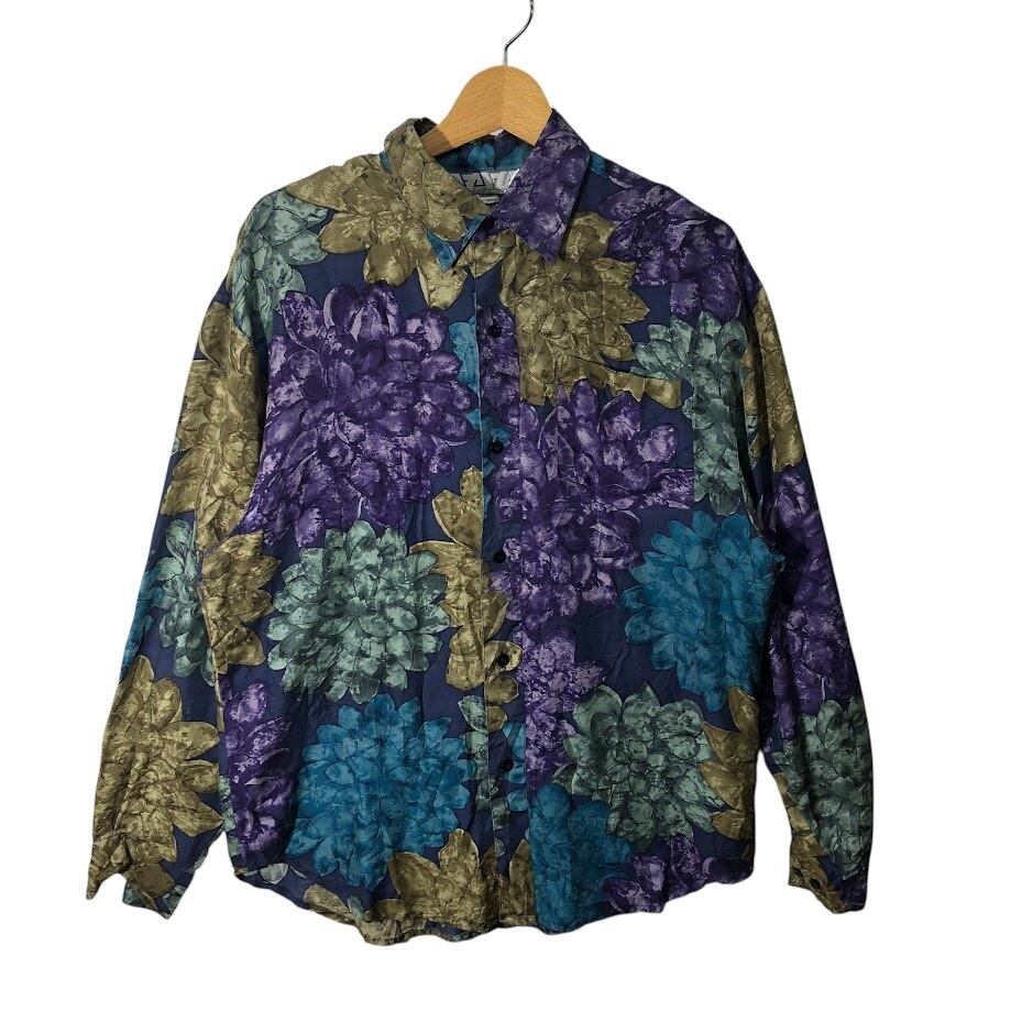 商品名:BYYFI シルクシャツ 総柄 花柄 フラワー 長袖 シャツ CHINA製 Sサイズ マルチカラー