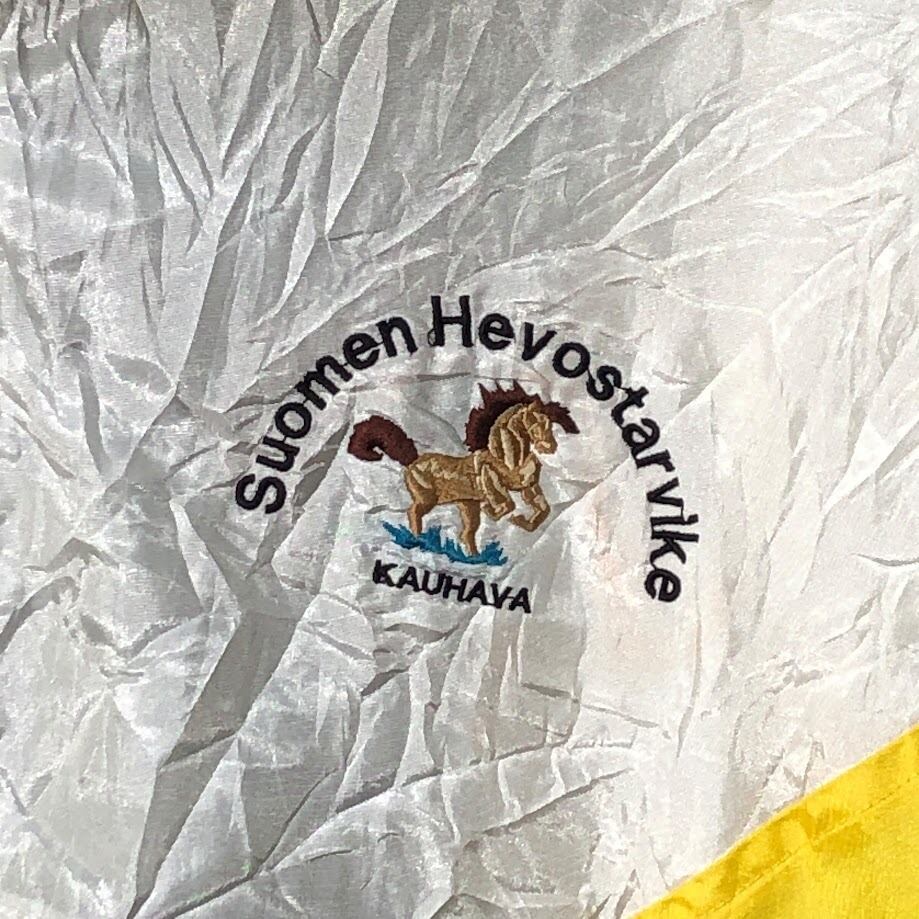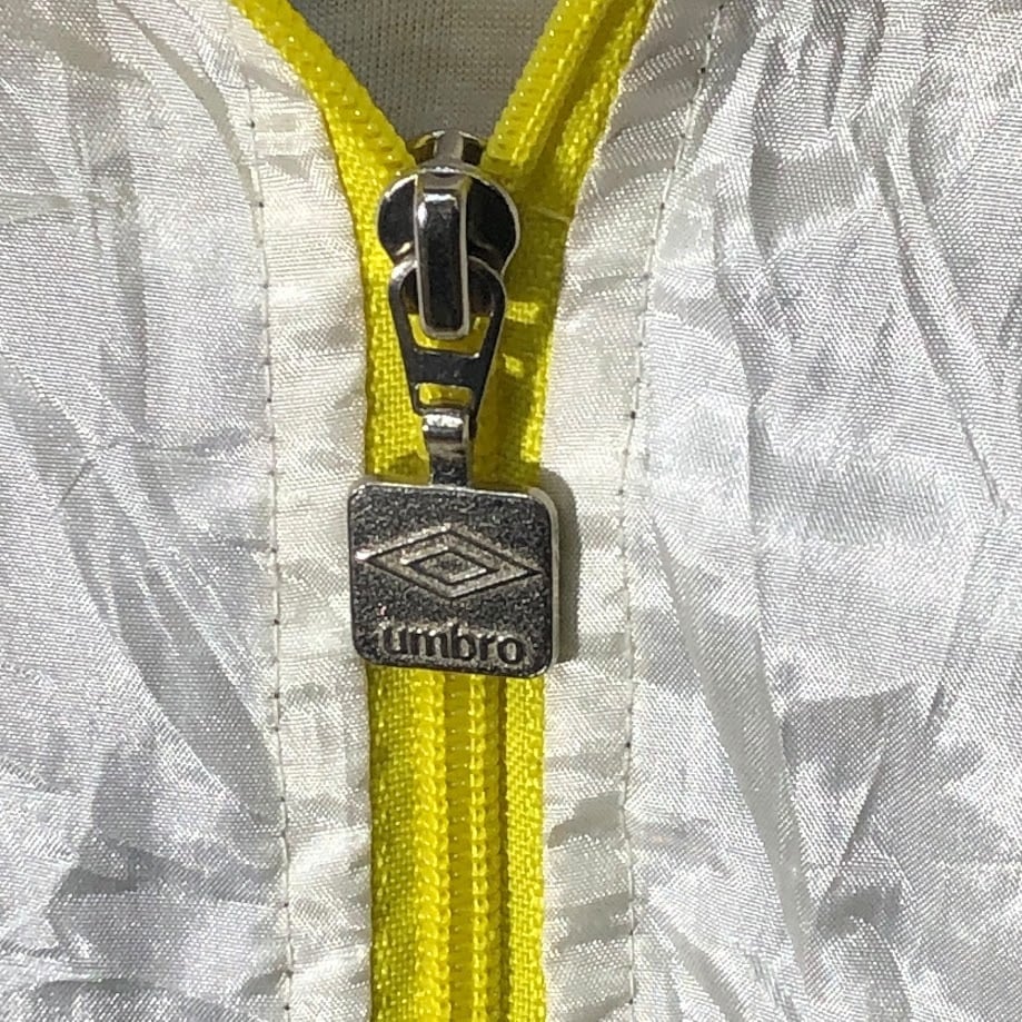商品名:90's vintage 90年代 ヴィンテージ UMBRO アンブロ 企業 フルジップジップアップ Suomen Hevostarvike ナイロンジャケット 企業ロゴ刺繡 ワンポイント刺繡 トラックジャケット ジャージ CHINA製 XXLサイズ イエロー