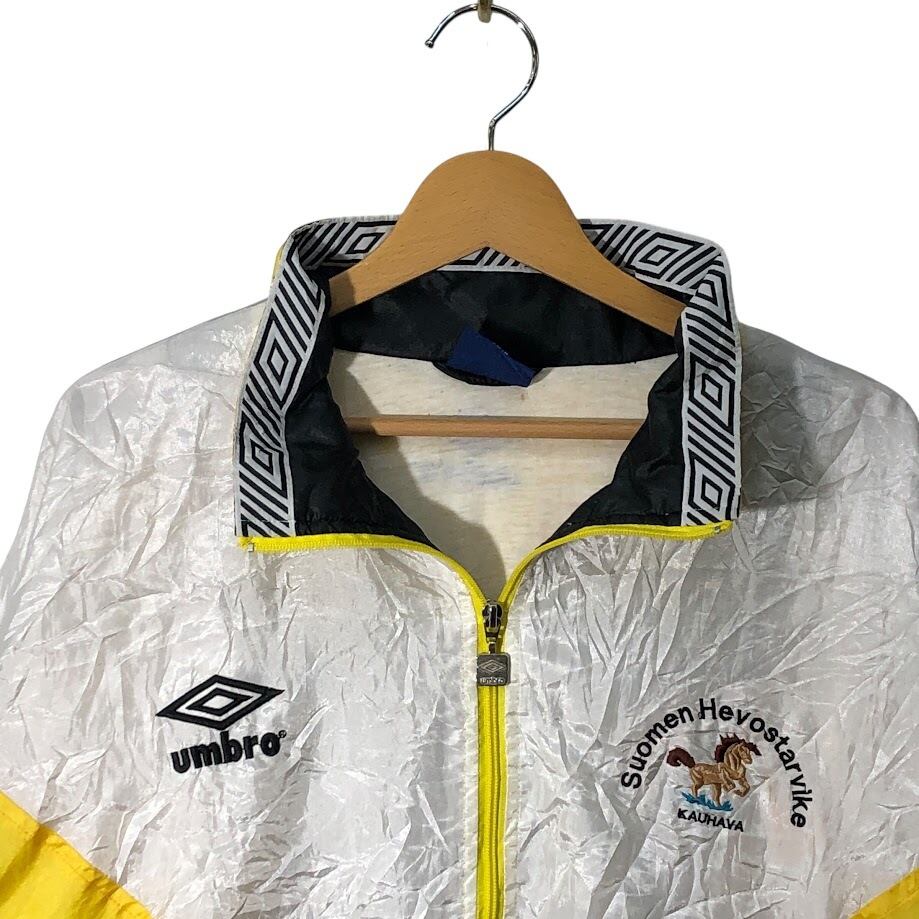 90's vintage 90年代 ヴィンテージ UMBRO アンブロ 企業 フルジップジップアップ Suomen Hevostarvike ナイロンジャケット 企業ロゴ刺繡 ワンポイント刺繡 トラックジャケット ジャージ CHINA製 XXLサイズ イエロー