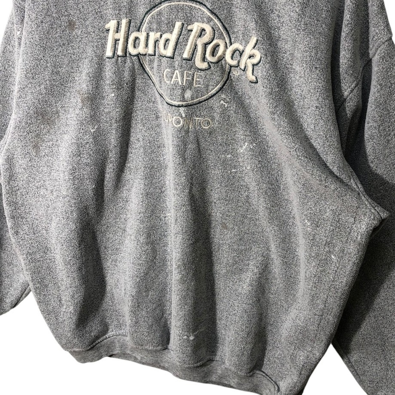商品名:Hard Rock CAFE ハードロックカフェ TORONTO トロント スウェット トレーナー 長袖 フロントプリント刺繍 オーバーサイズ ビッグシルエット クルーネック CANADA製 XLサイズ グレー