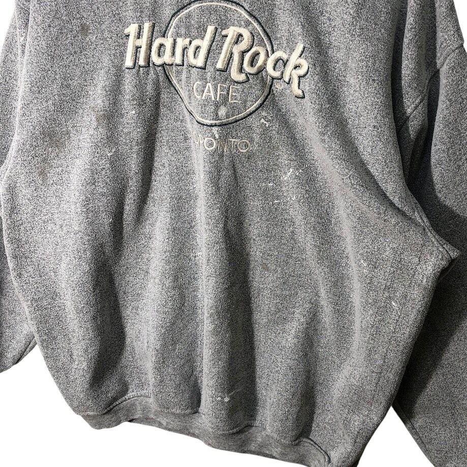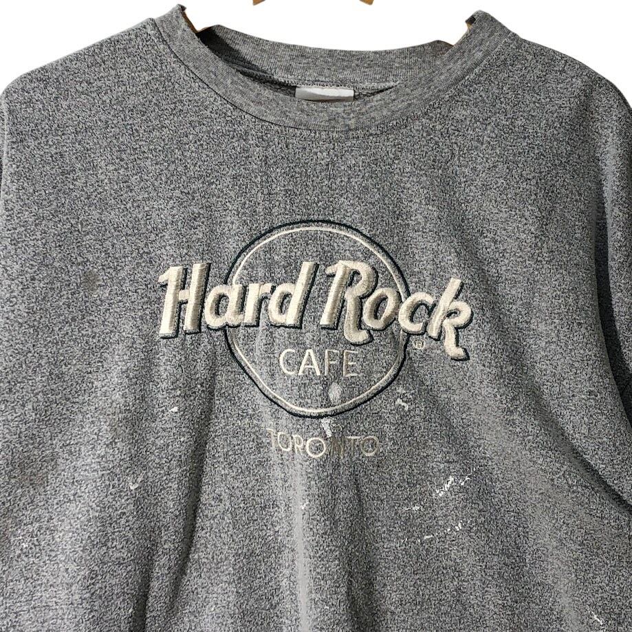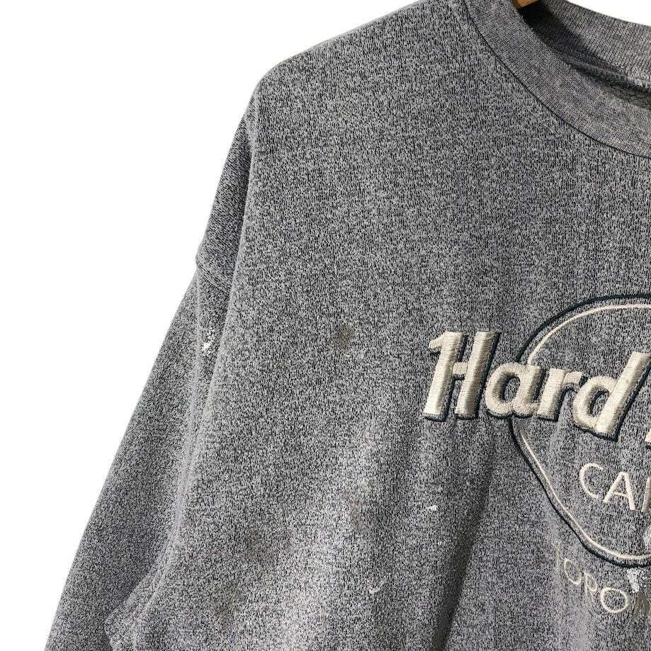 Hard Rock CAFE ハードロックカフェ TORONTO トロント スウェット トレーナー 長袖 フロントプリント刺繍 オーバーサイズ ビッグシルエット クルーネック CANADA製 XLサイズ グレー