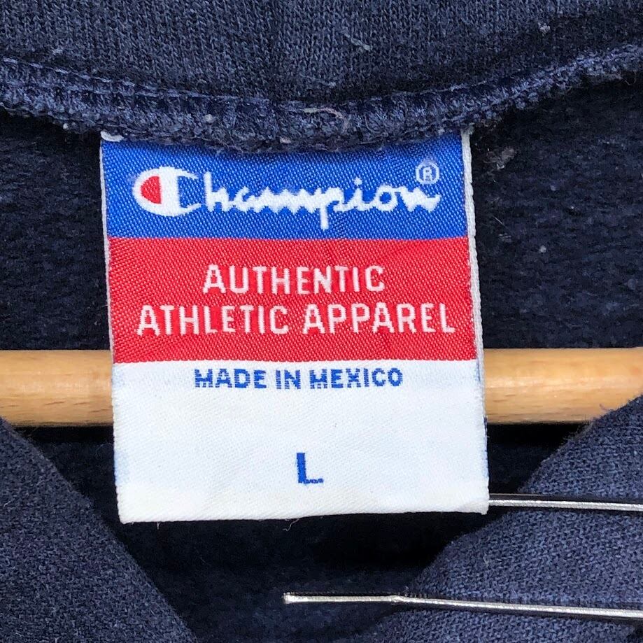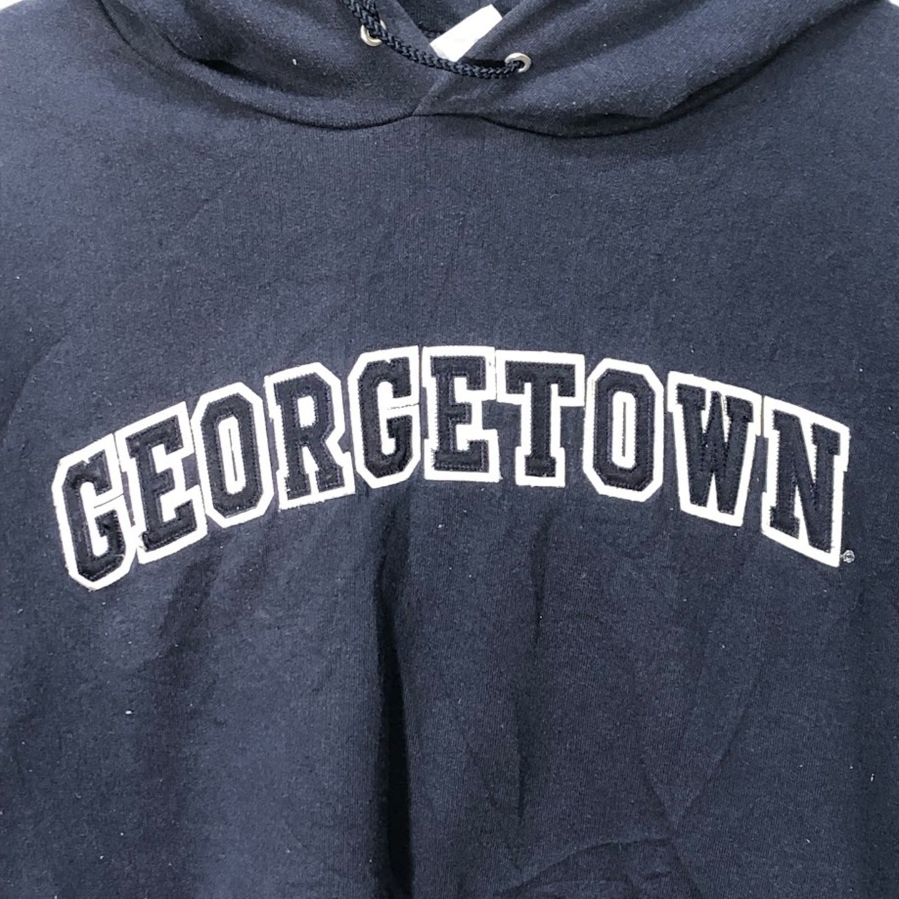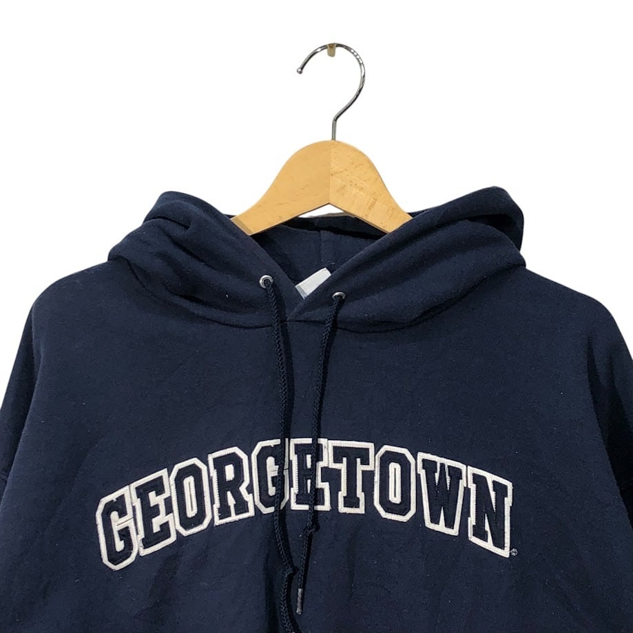 商品名:Champion チャンピオン GEORGETOWN ジョージタウン大学 カレッジ刺繍 パーカー フーディー プルオーバー 長袖 フロント刺繍 ワンポイント袖刺繍 Mexico製 Lサイズ ネイビー