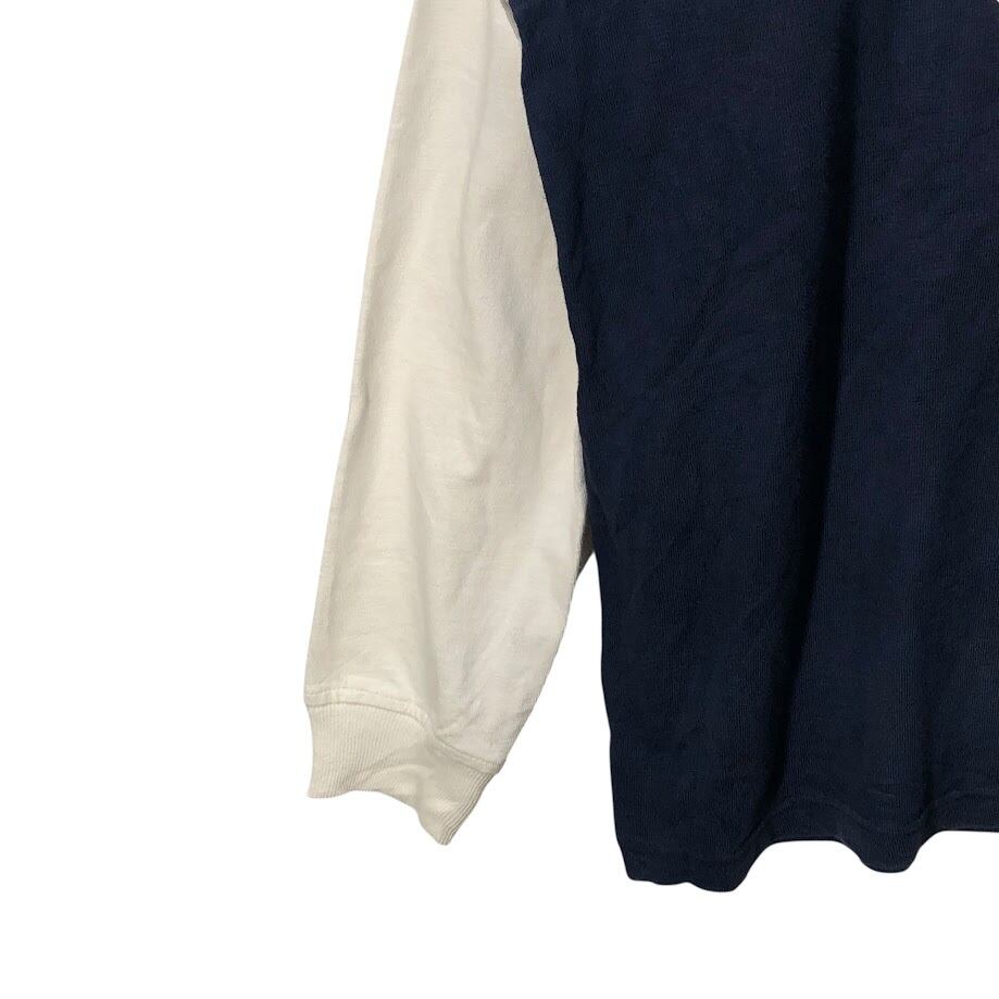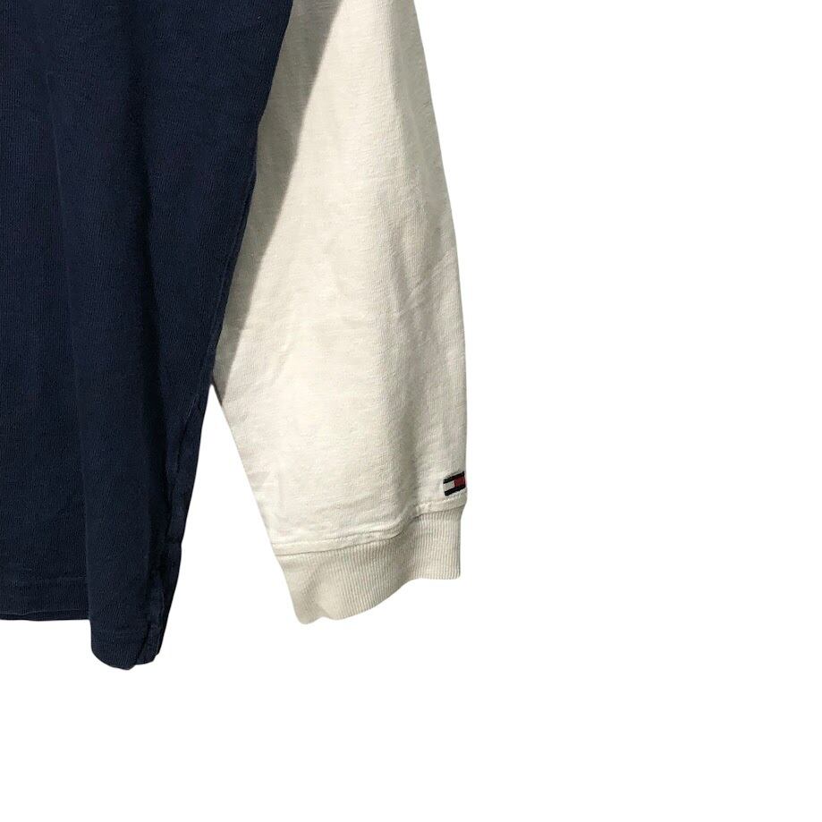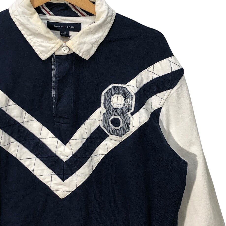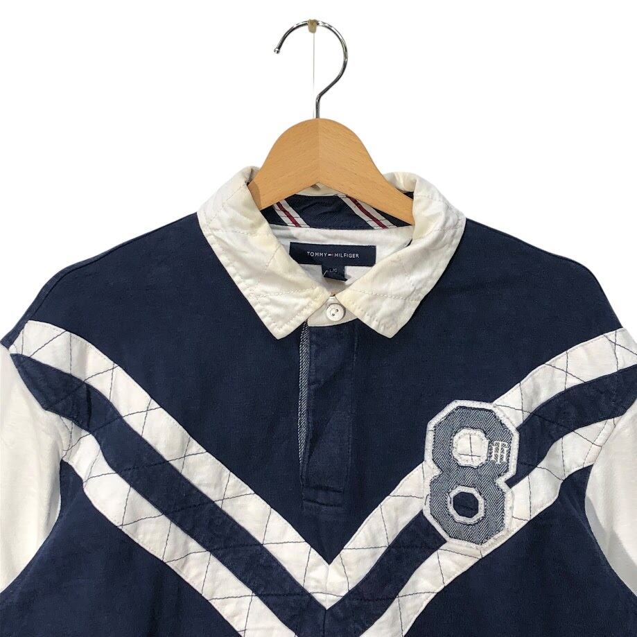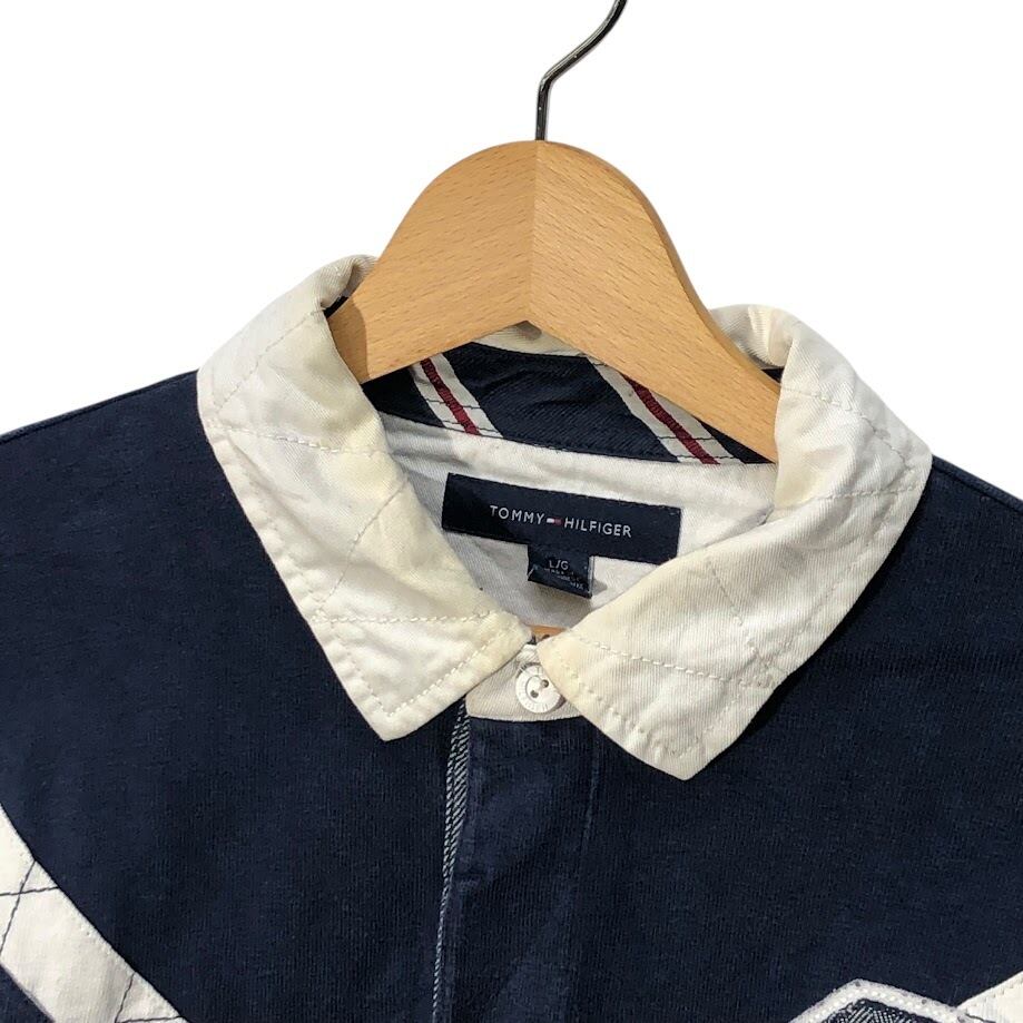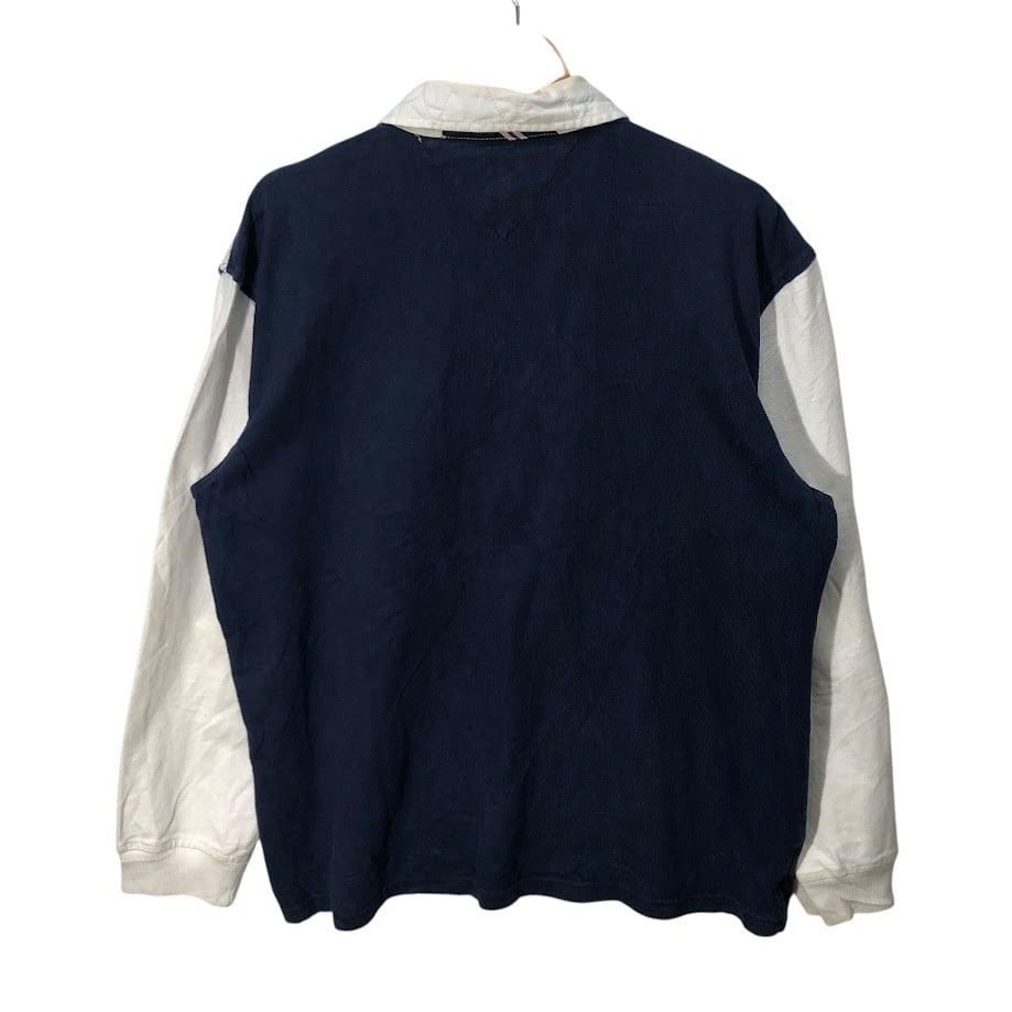 TOMMY HILFIGER トミーヒルフィガー ラガーシャツ 長袖 ポロシャツ ワンポイント刺繡 Philippines製 Lサイズ ネイビー ホワイト