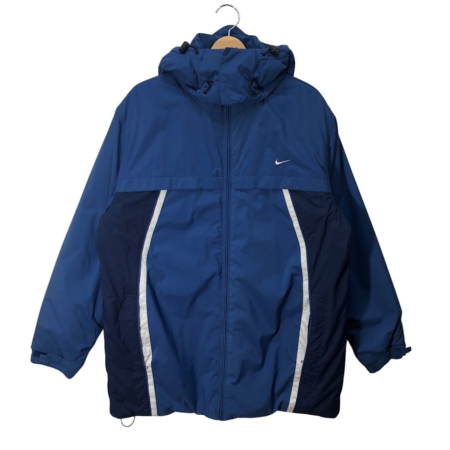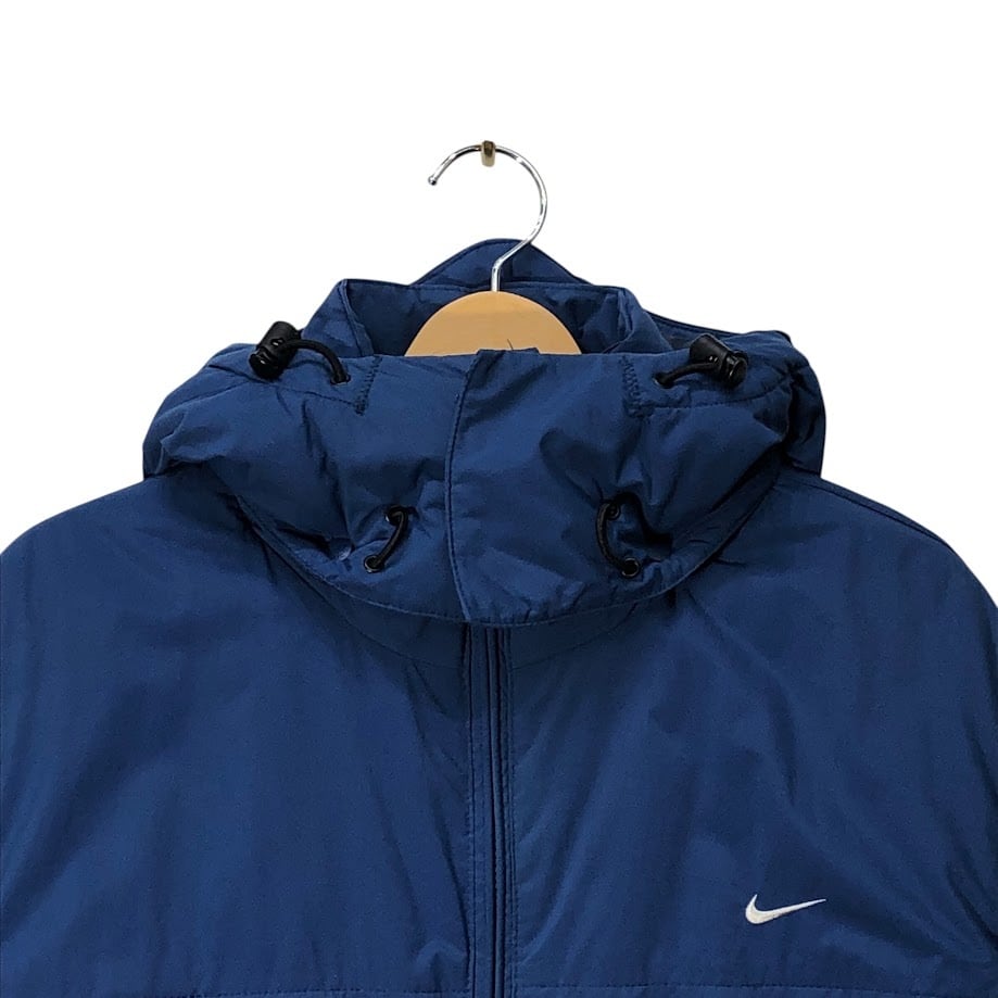 商品名:00's vintage 00年代 ヴィンテージ NIKE ナイキ スウォッシュロゴ刺繍 中綿 フード取外し アウター ドローコード ワンポイント刺繡 INDIA製 Lサイズ ブルー ネイビー