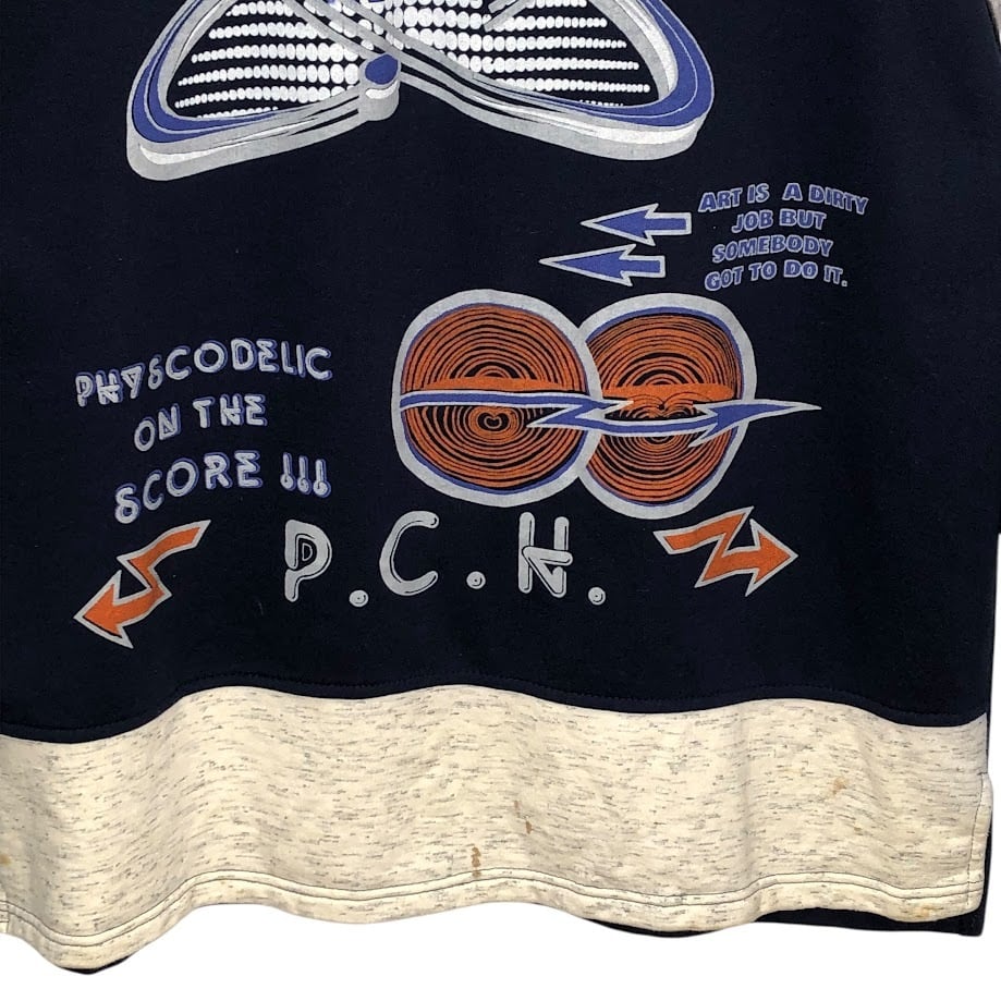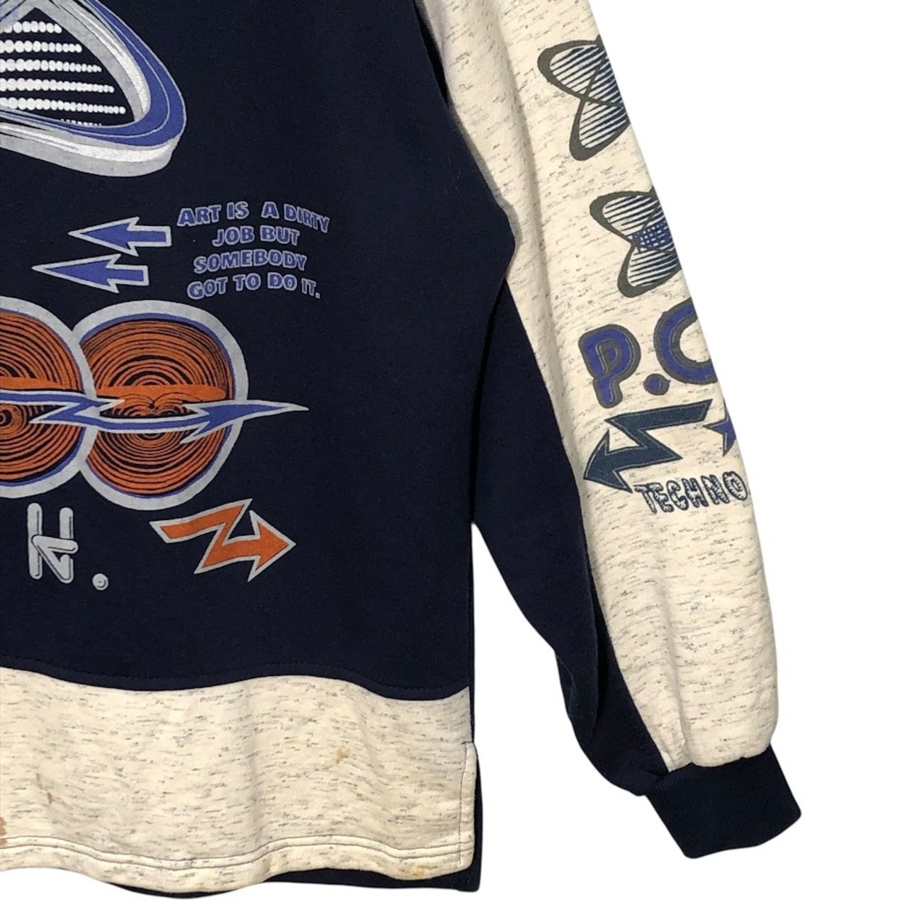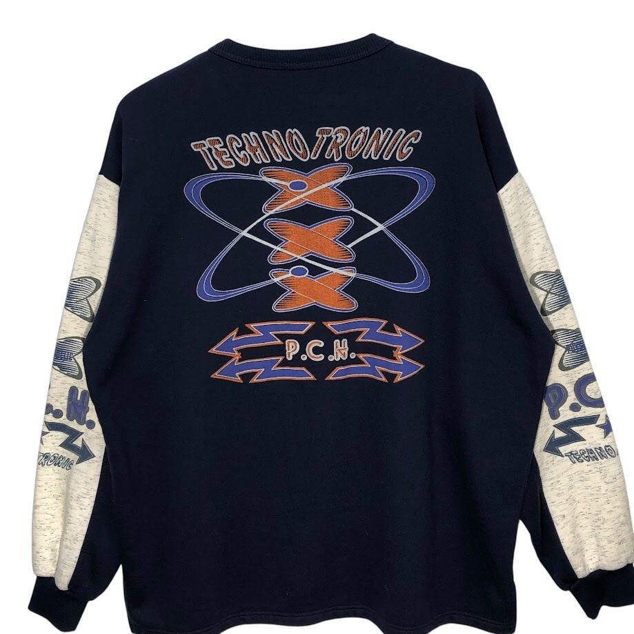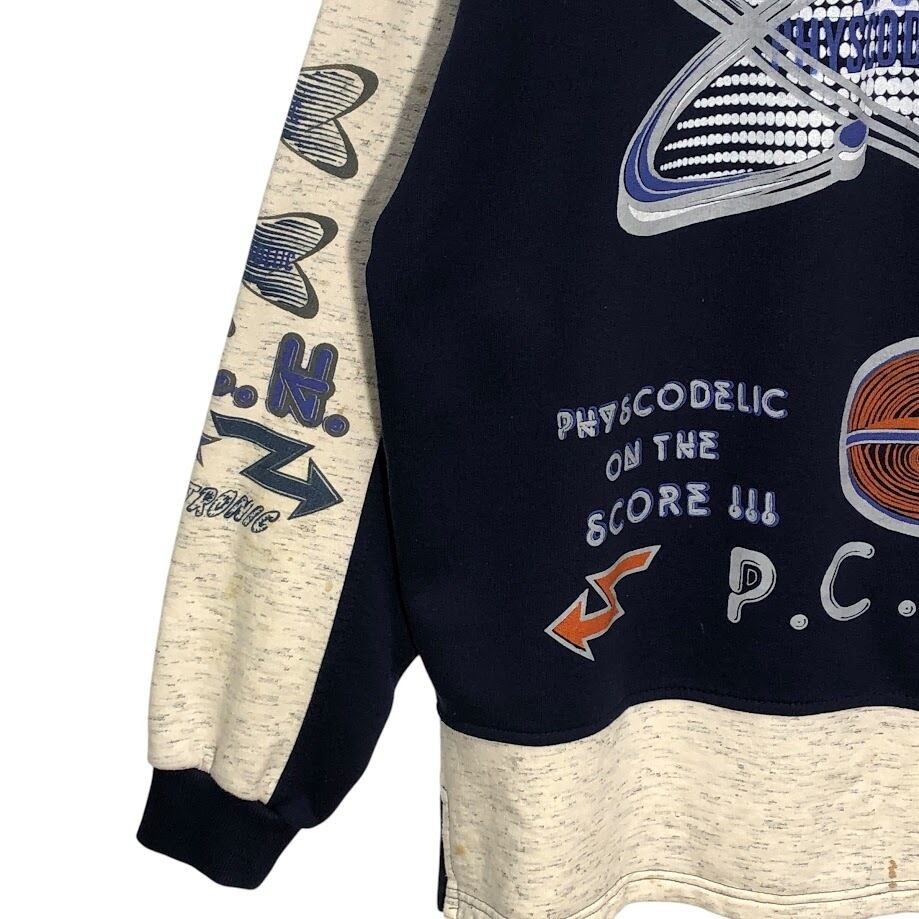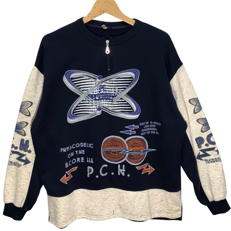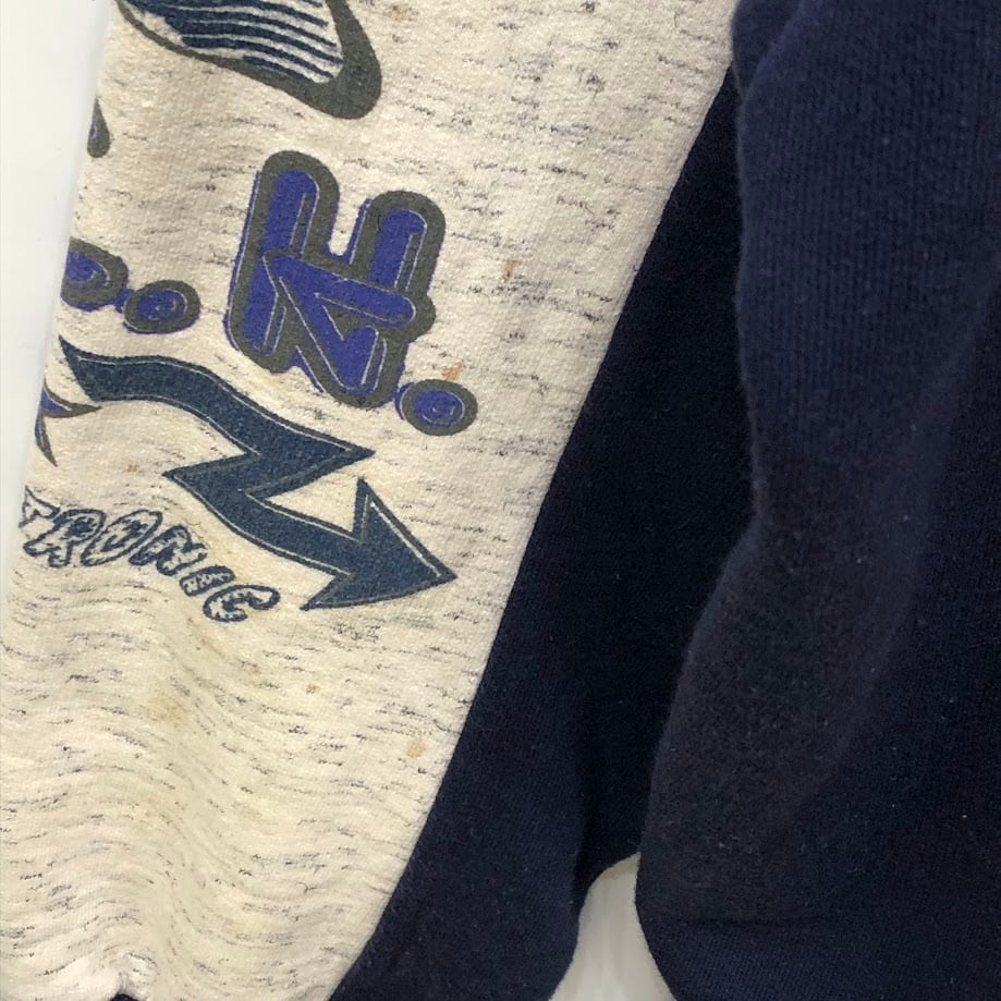 ハーフジップ スウェットフロントプリント バックプリント Lサイズ ネイビー オートミール