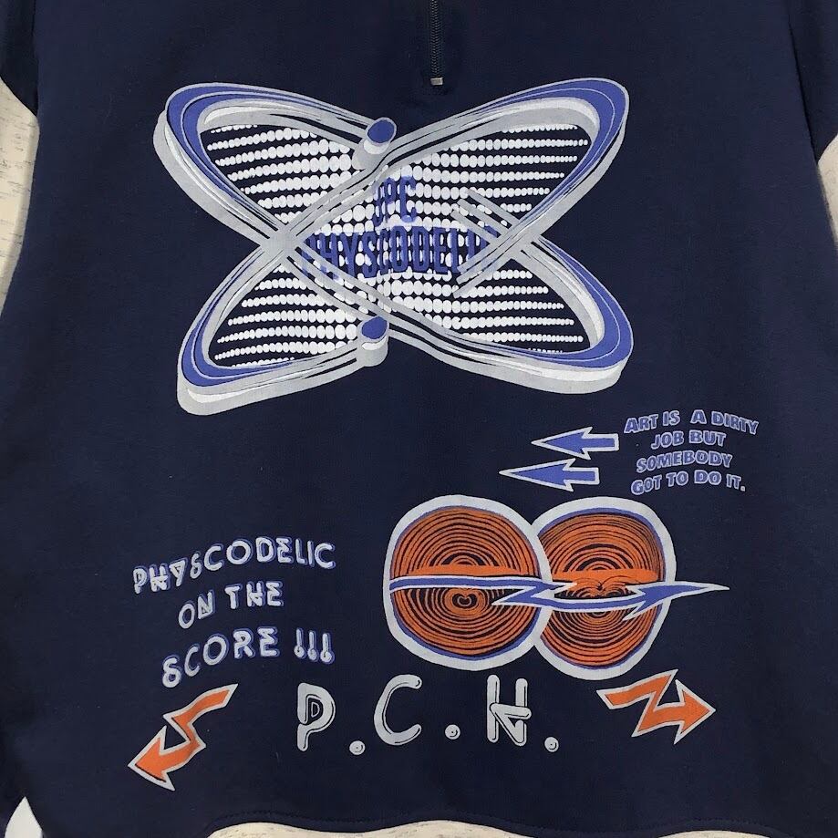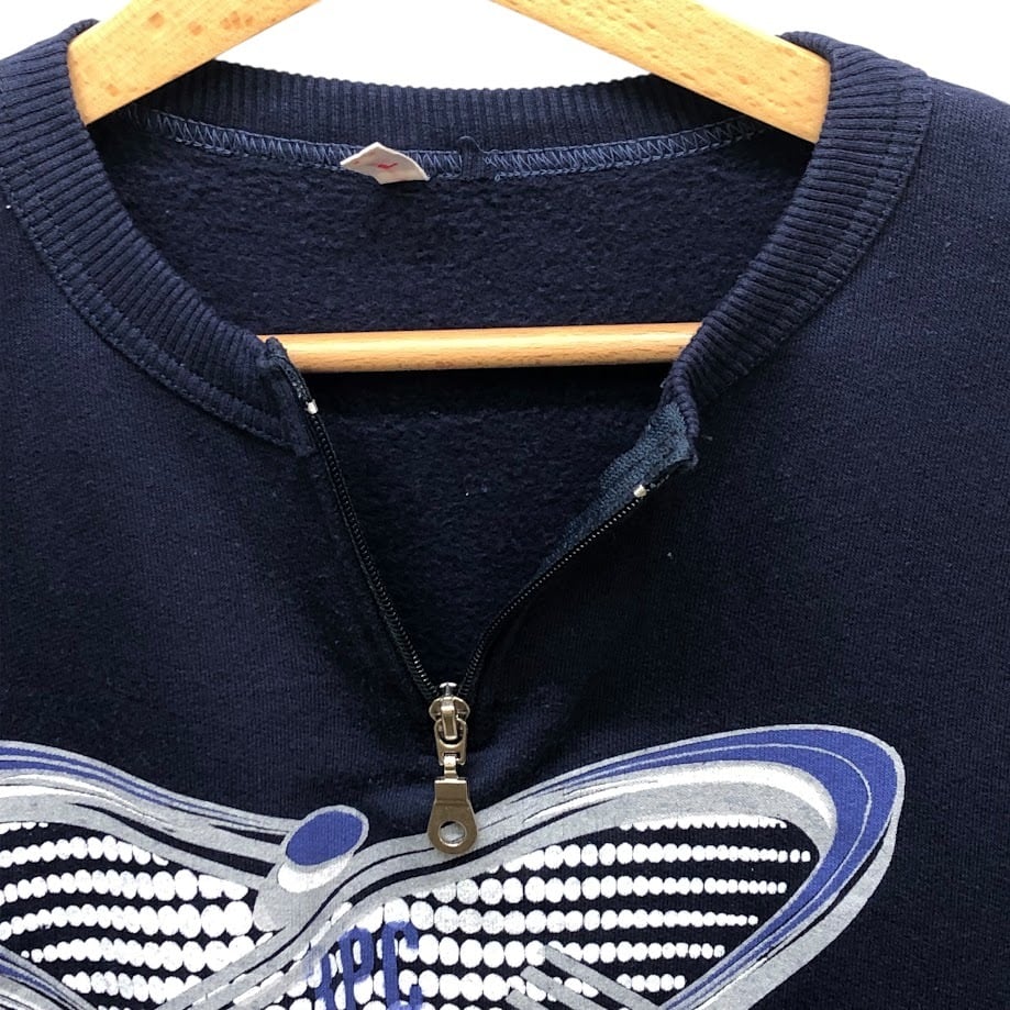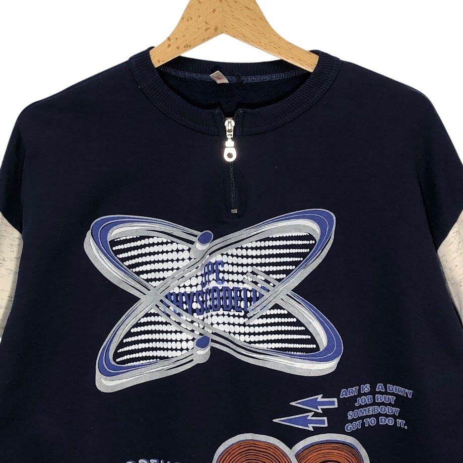 商品名:ハーフジップ スウェットフロントプリント バックプリント Lサイズ ネイビー オートミール