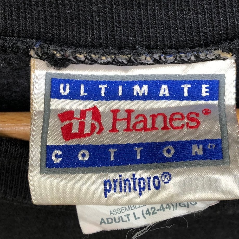 商品名:Hanes/ヘインズ 90年代ヴィンテージ ULTIMATE COTTONスウェット トレーナー 企業ロゴ刺繡 クルーネック Mexico製 Lサイズ ブラック