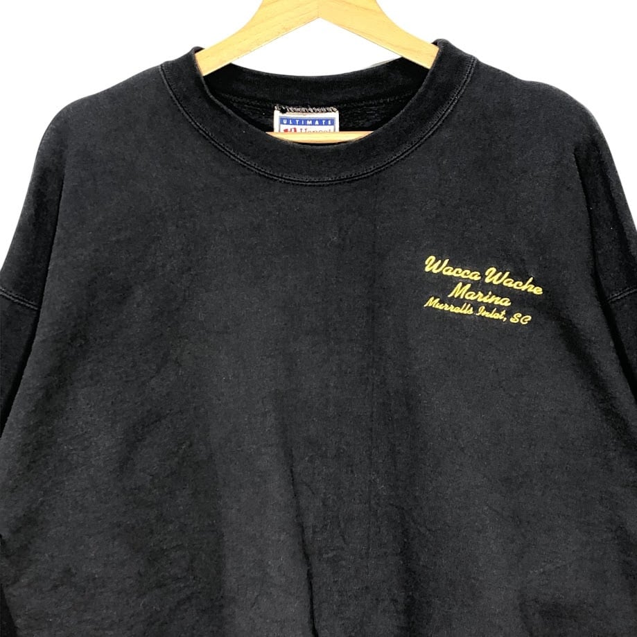 Hanes/ヘインズ 90年代ヴィンテージ ULTIMATE COTTONスウェット トレーナー 企業ロゴ刺繡 クルーネック Mexico製 Lサイズ ブラック